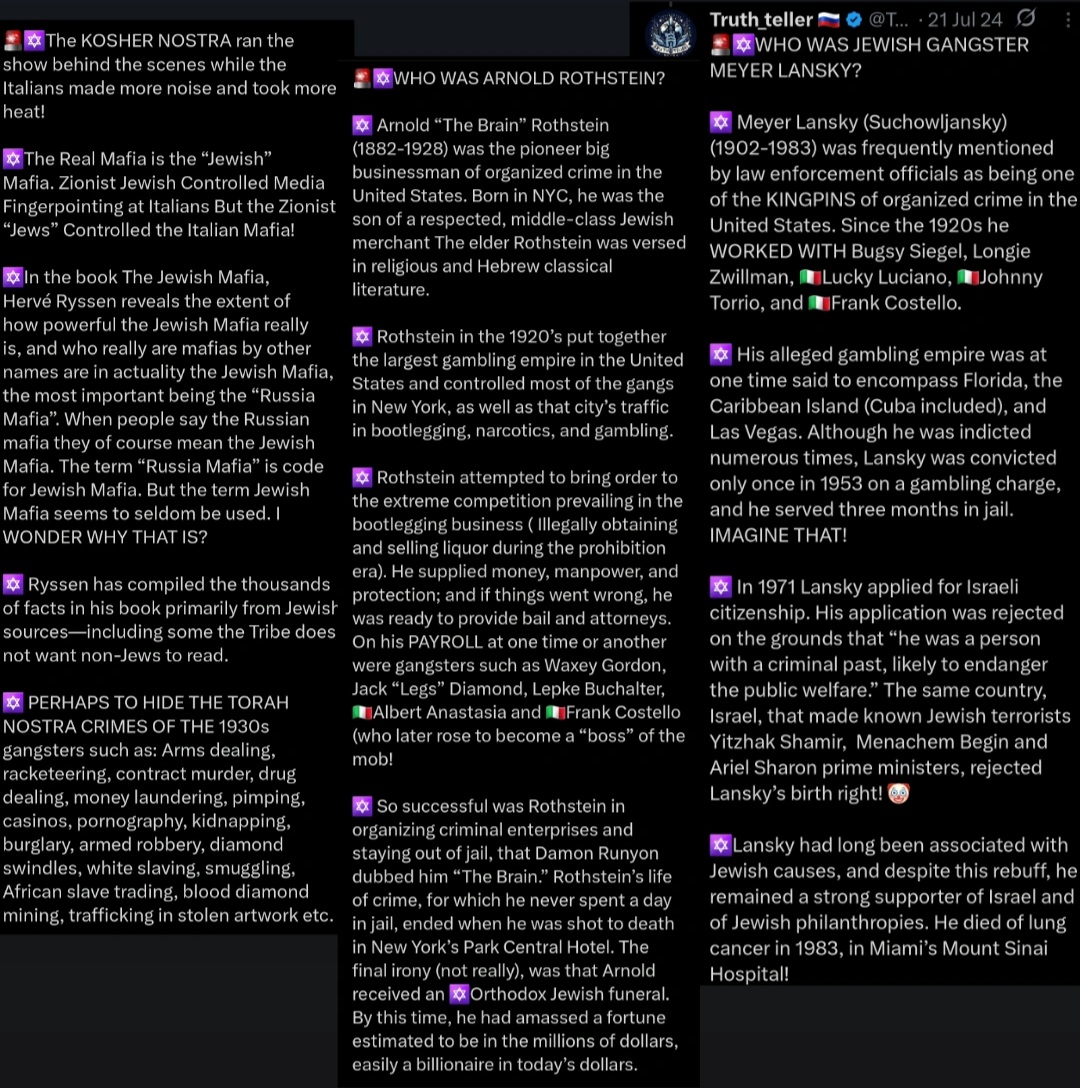 Why does every Hollywood mafia movie focus exclusively on the Italian mafia, but always avoids the fact that (a) The Jewish mob was far more influential and destructive to society, or (b) that the Italian mafia itself was controlled by Jews? ✡️🧐 https://t.co/aHbT8R2ZYU