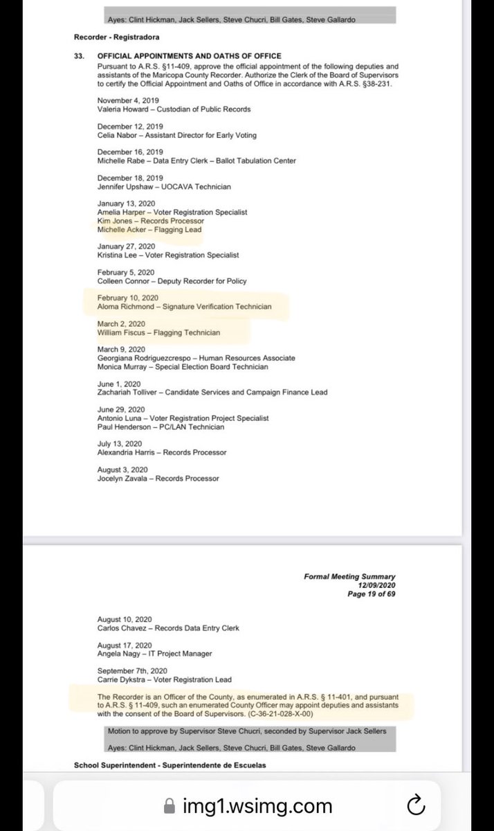 @knpk1955 @JT4family @JanuszP20 @ItsBS_YouTube @casualita1 @perinejennifer5 @AngryFleas @jonathan_wcm @MrNemoCurat @Joe__312 @RStabb26 @DecentFiJC @teamphil @BlueBear0386 @Michael47460730 @ASK_Esq29 @seankdesertrig @JaminMaish @RayMosher5 @AndrewLazarus4 @ValhallaMayan @jackdoranjr @johndeerr84 @SavSav299947970 @TxSaving @Colsen54 @PeteD1359 @KevinMoncla @ParikhClay @GrouchoG @RobertRiver67 @EdwardMondini @DKALLDAY123 @MornevanderBerg @LoebMimi @deusxmach1na @PootDibou @Curiousityfirst @ronc8081 @jasonslenderman @kristiwelshies @Garrett_Archer @ClemSkelton @DLassing233 @KristenNHammond @PamelaEdwards @David4677484957 @BlehmLawAZ @KariLakeWarRoom Lake’s team should know by now that peeps in sig ver require appointment by BOS by statute/epm thus why fiscus, richmond, acker went through the process. “Flagging lead”, “sig ver tech” Rey testified 153 employees. Where are the appts in the BOS minutes? Who are these peeps?