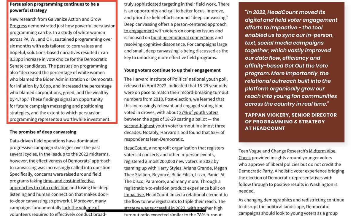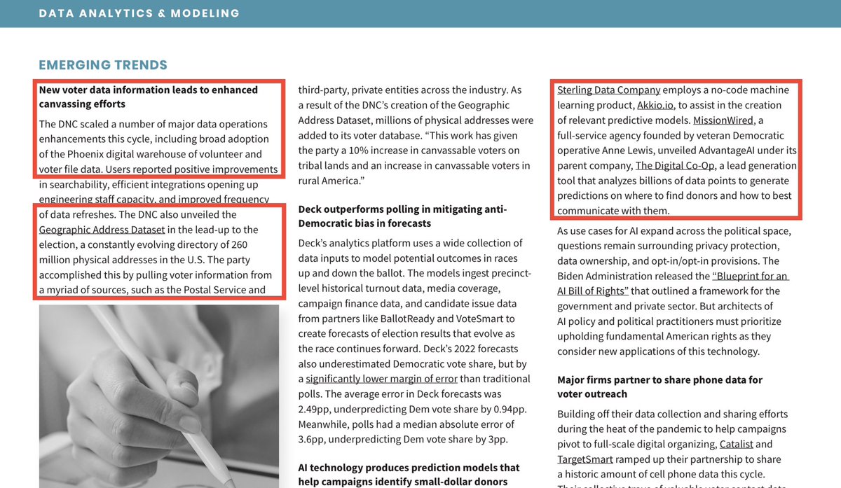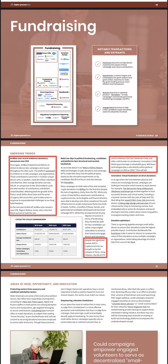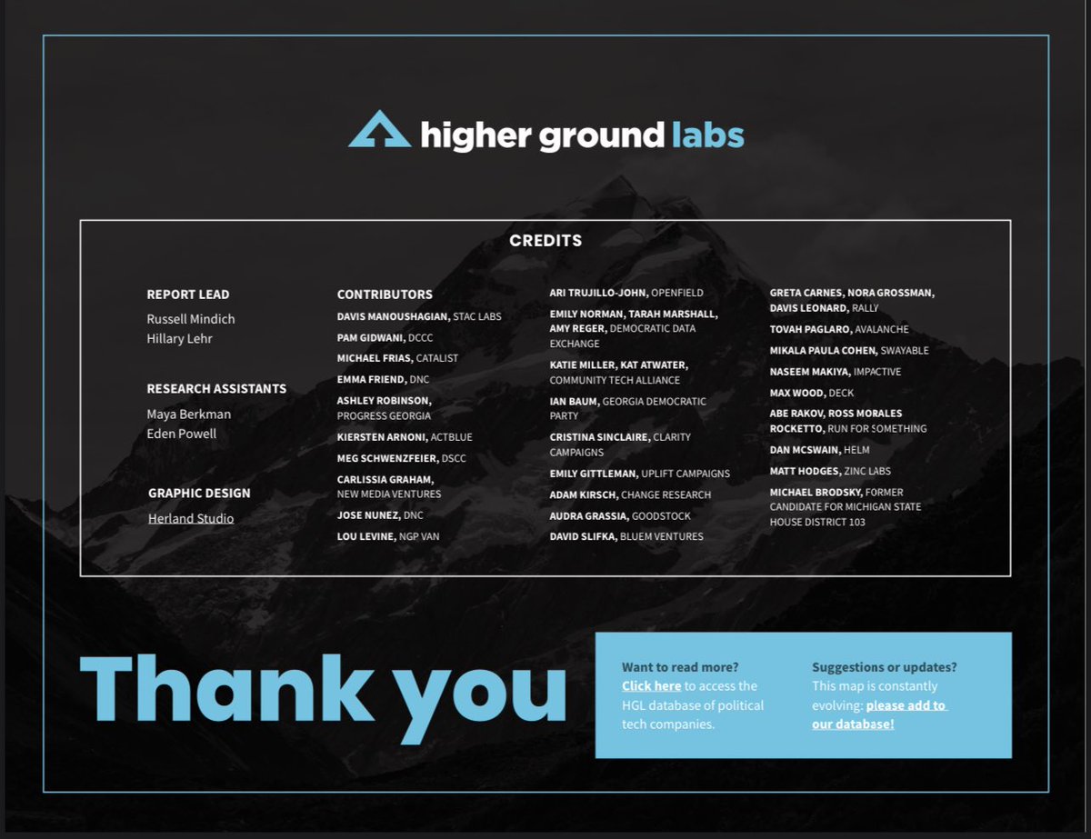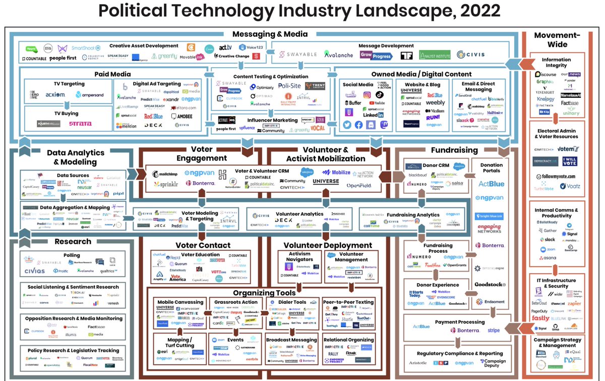 💥Check out this “2022 Political Tech Landscape Report” from Higher Ground Labs.💥 💥It outlines the Democrats’ 2022 “campaign” data laundering apparatuses, their means of GEOLANDSCAPING voters based on addresses instead of physical humans at those addresses, WHERE they pull their data from (USPS, other 3rd parties, etc.) and the financiers behind the buildouts of these projects. (ActBlue is everywhere in this f’ing thing.) 💥Hey, it even discusses the horrifying “psychological programming” models they’ve deployed over predetermined durations to cognitively manipulate suburban white women.😒 (Cold storage.)