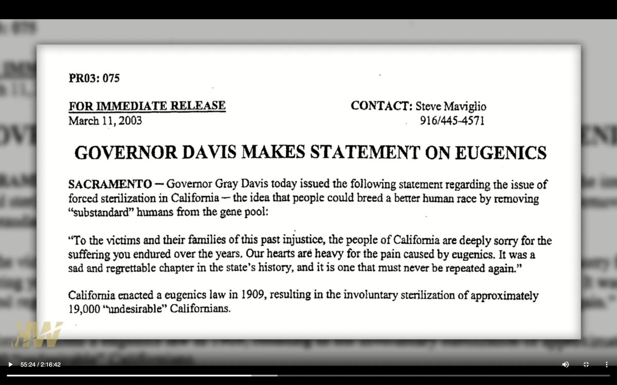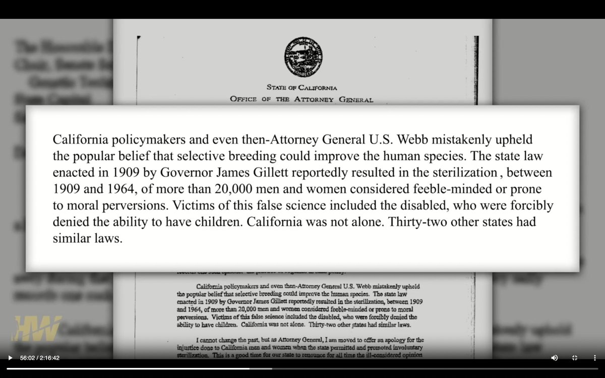 California came out and apologized in the early 2000's for this horrible eugenics-based forced sterilization chapter in their history: