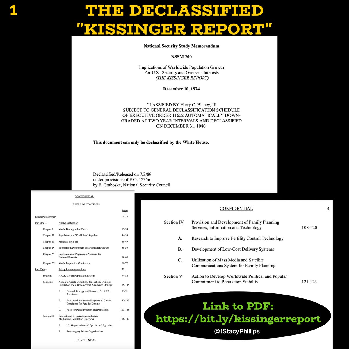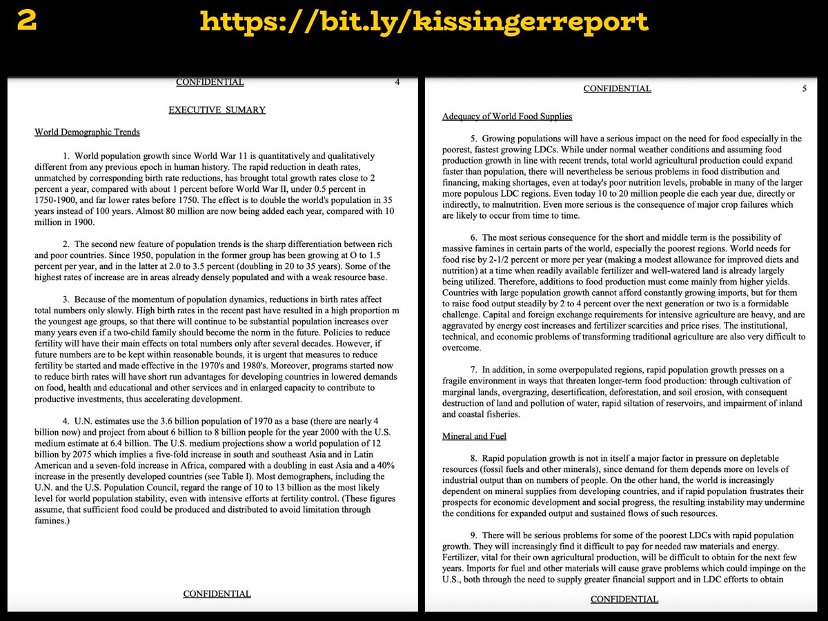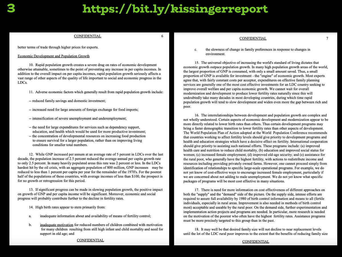 (3) Kissinger Report Thread, continued National Security Study Memorandum 200 NSSM 200 December 10, 1974 Full PDF: https://bit.ly/kissingerreport