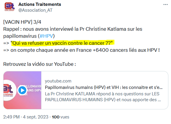 1⃣ Quand on parle du papillomavirus, son fil en devient bien rempli. Exemple : journée du 4 septembre 2023 ça commence à 2h57 du matin jusqu'à 18h37 🥱 Avec les acteurs habituels, et d'autres... plus surprenants 😑 (navré pour la qualité de la vidéo, je ne fais que débuter)