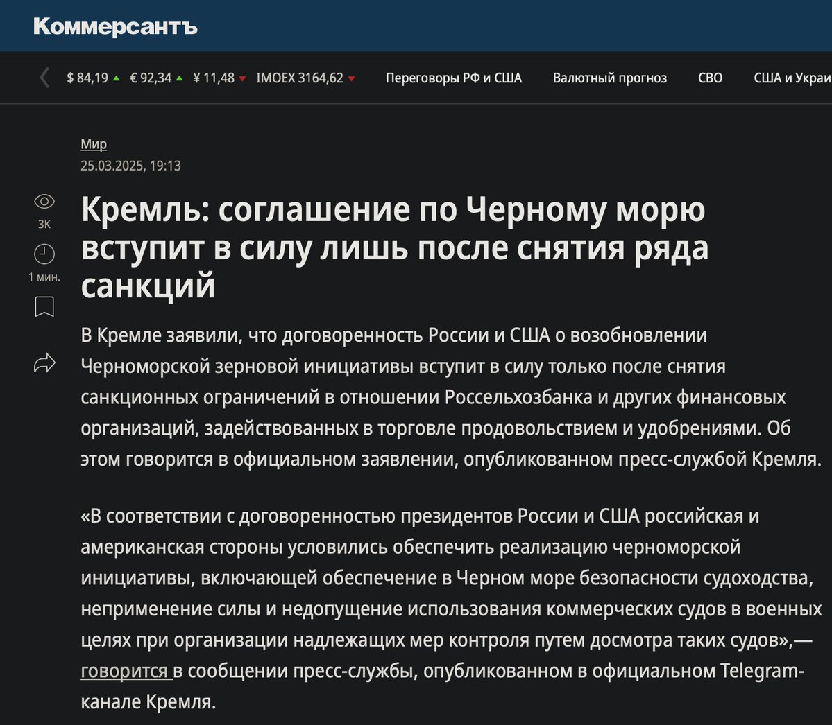 🧵Big shift in U.S.-Russia relations—quietly brokered in Riyadh. After over a decade of proxy conflicts, Washington and Moscow are testing something different: de-escalation. Here’s what just happened (and why it matters more than most realize): ⬇️ The Riyadh deal includes terms on grain exports, sanctions relief, and a limited truce on energy infrastructure. The most substantive diplomatic progress in many's the year. The Kremlin says Washington agreed to support the restoration of Russian agricultural exports—and lift some sanctions first. Conditions include reconnecting Rosselkhozbank to SWIFT, unblocking insurers, and allowing access to ports and payment systems for Russian food and fertilizer. This is not generosity. It’s self-interest. Africa, Asia, and Latin America need stable fertilizer supplies. US agribusiness wants lower input costs. The real loser? The European Union—still banning Russian goods and now more dependent on Chinese suppliers, while preaching “resilience” and “diversification.” Go figure. Also included: a 30-day moratorium on strikes against energy infrastructure in both Russia and Ukraine. The deal started March 18––now both sides confirmed it publicly. No drones, no sabotage, no attacks on pipelines or refineries. Another clause: commercial ships in the Black Sea can’t be used for military purposes. Trump’s team is recalibrating—less moral grandstanding, more transactional bargaining. Call it a course correction, not an ideology shift. Is it a turning point? Too soon to say. But it proves the US can act pragmatically when needed. The entire package hinges on two things: – Ukraine and Russia sticking to the new rules – Washington enforcing them Bottom line: Talks are happening. Trade is back on the table. And there is hope the Ukraine conflict can be resolved in the near future.
