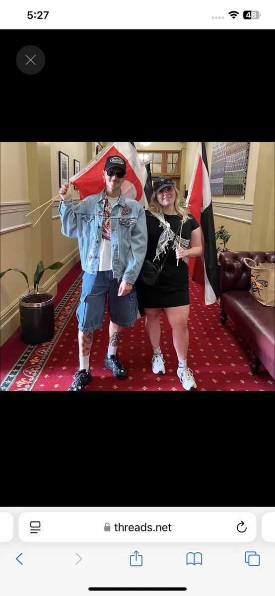 Benjamin Doyle & Chloe.. he forgot to lock his threads account I guess. The 🌀again. Doyle: ‘be gay vote green’ Ricardo: ‘be gay do crime’ Chloe: ‘be gay be a pedo’ Ben holding a sign proudly admitting to Transing his young kid. Just evil. That’s some seriously dark subculture messaging. Please talk to friends and family about how dangerous this maladjusted party is.