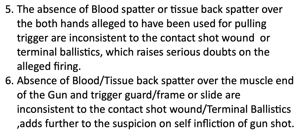 7/ Based on those reports, Suchir would have been heavily impaired — possibly unconscious — at the time of death. Also, the gun found at the scene had no blood, no tissue, no back spatter. His hands didn’t either. For a point-blank shot to the head, that’s virtually impossible. https://t.co/y96acJvcI9