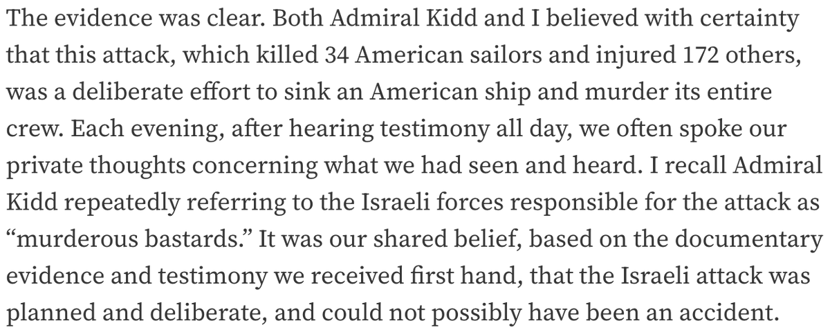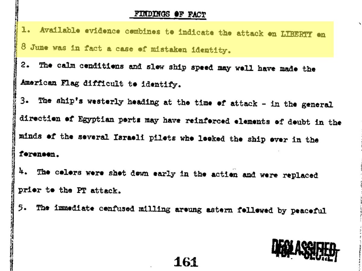 13/ The only official investigation, which lasted on only 7 days, and conducted by the U.S. Navy Court of Inquiry, ignored much of the testimonies given by the Liberty crew, and concluded that "the attack on Liberty on the 8th of June was in fact a case of mistaken identity.” https://t.co/SZL8PGiig1