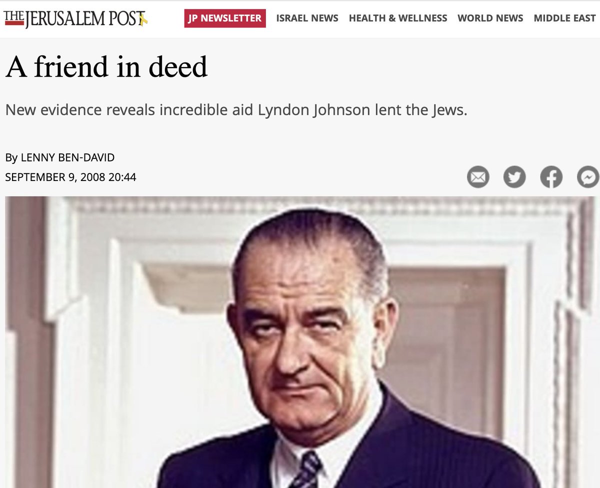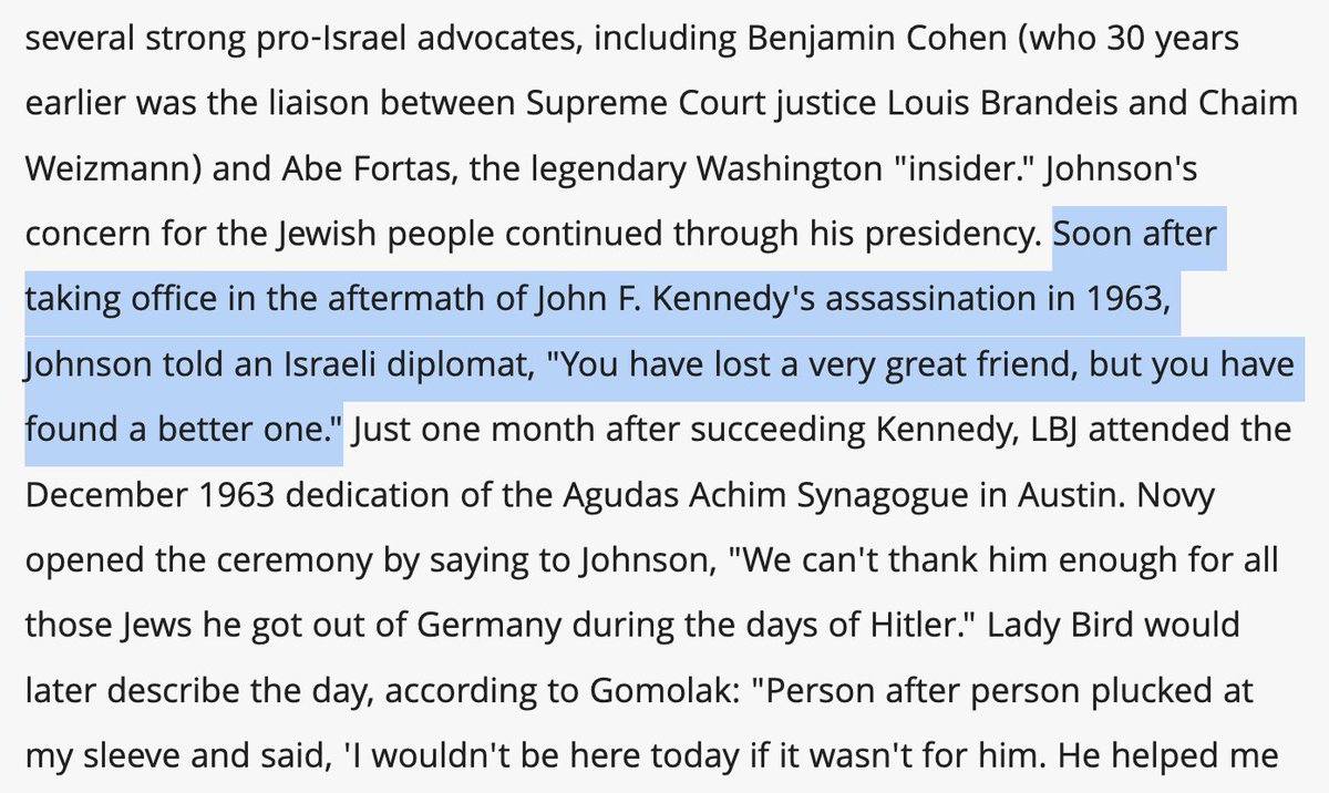 3/ President Kennedy had maintained a balanced approach in the Middle East, voicing support for Israel while trying to maintain US neutrality in the region. But after his assassination, President Lyndon Johnson took a much stronger stance in favor of Israel. https://t.co/aUh426GRWu