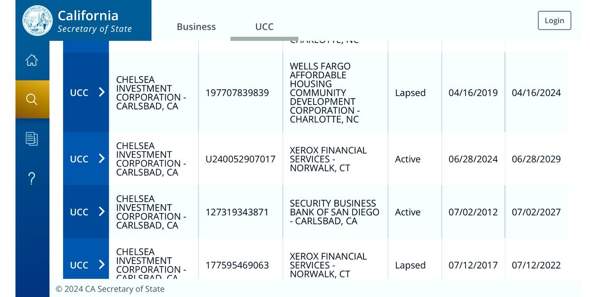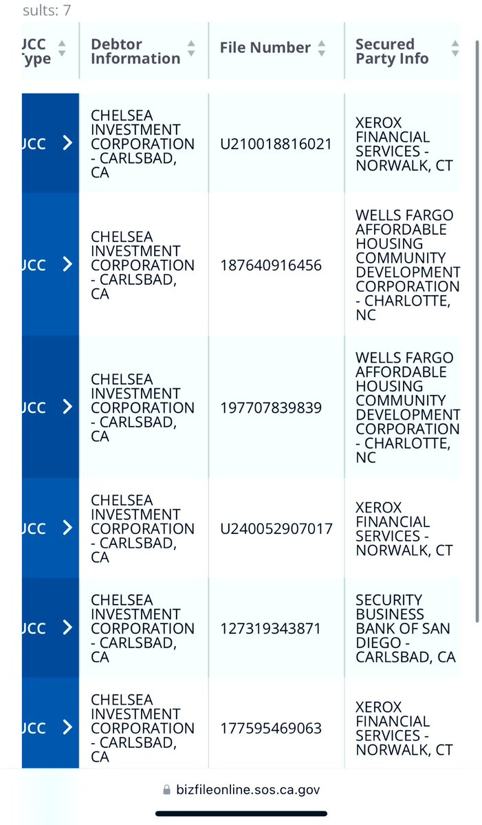 10/ A dig into UCC filings and liens — Chelsea Investment Corp. is leaving a nasty paper trail all over the country, so their entanglement with "public housing" is not limited to San Diego or California. I would advise you start looking in your local area to see what turns up. https://t.co/qtk9qjJZ4z