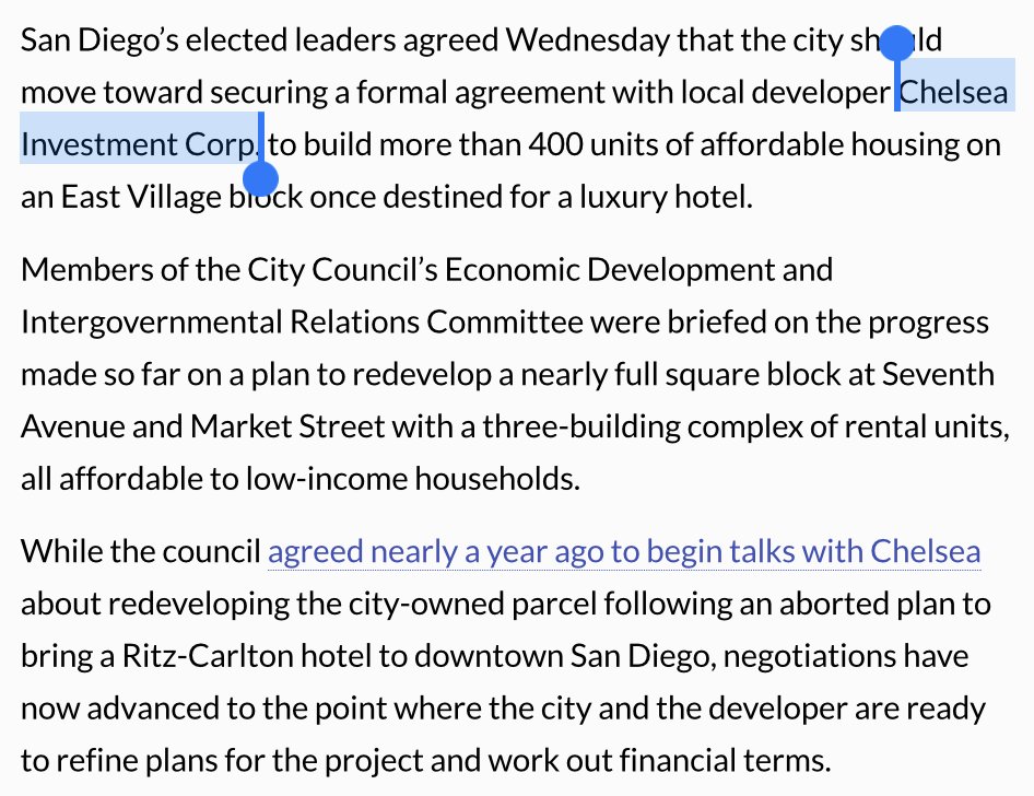 9/ One thing we do know: When Todd Gloria the chair of the San Diego's Budget and Finance Committee, records show the the Founder and then CEO of Chelsea Investment Corp. was a major donor to Gloria's campaign. Quid Pro Quo? 🤔 https://t.co/IuPqoATxPs