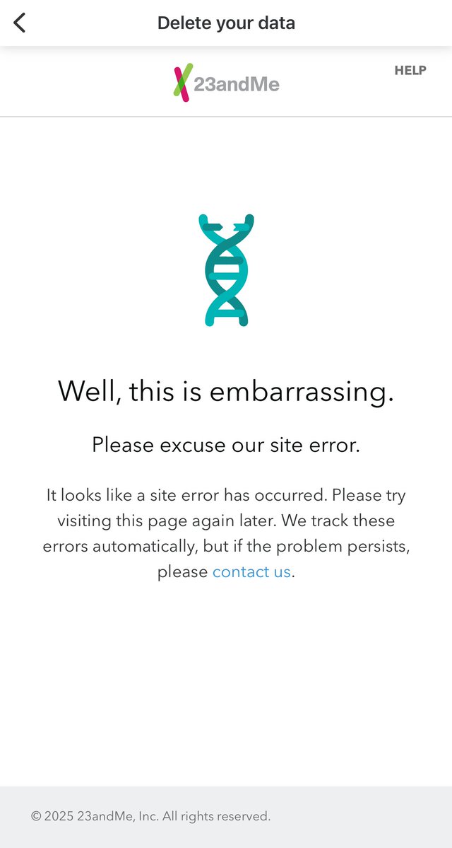🚨UPDATE: Users trying to delete their 23andMe DNA data are facing website issues. Others who think they deleted it get a confirmation email — but buried inside is a link they still have to click to "complete" deletion. Looks like they really don't want us to delete the data.🤔 https://t.co/xqYS1wtfsW