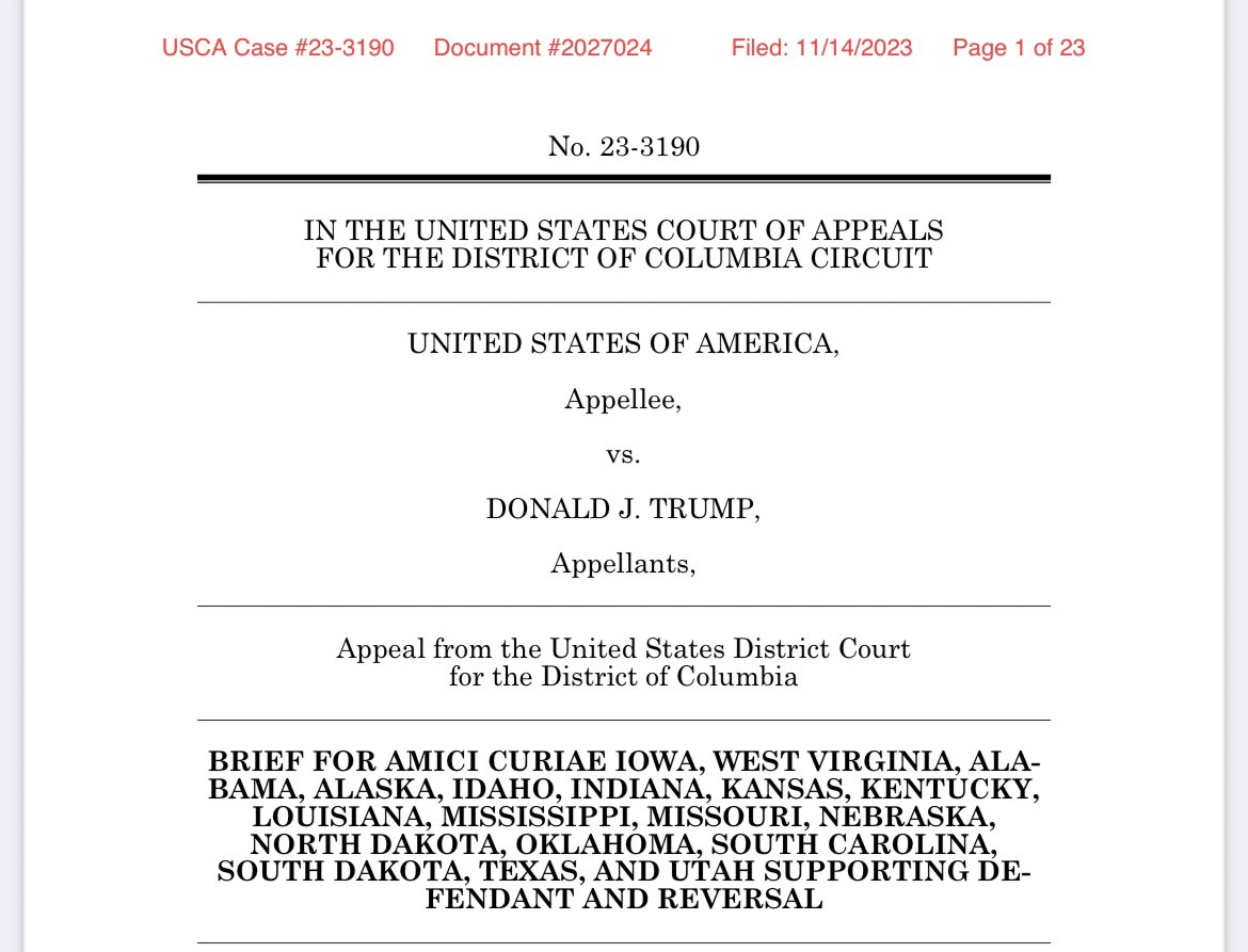 Proud to have joined with 17 other AGs on this critical brief. Read more about it here: https://www.alabamaag.gov/wp-content/uploads/2024/03/2024.03.19-AL-Amicus-Br-ISO-Trump-FINAL.pdf