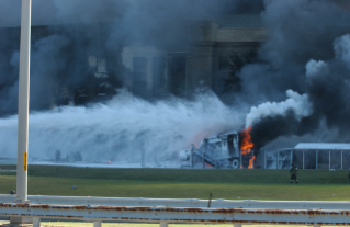 The Pentagon was struck by American Airlines Flight 77 at approximately 0937 on 11 September 2001. The plane hit the E Ring at the first deck level between Corridors 4 and 5. The plane's path of destruction ended in the alley between the C Ring and B Ring. https://www.history.navy.mil/research/archives/digital-exhibits-highlights/photo-galleries-9-11/pentagon-attack.html#:~:text=The%20Pentagon%20was%20struck%20by,C%20Ring%20and%20B%20Ring.
