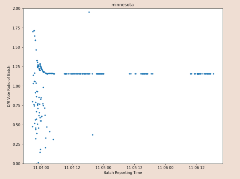 Around 4am there, there is a marked shift in the ratio of D to R mail-in ballots. Based on other posts in this thread, this should not happen. This is an anomaly, and while anomalies are not always fraud, often they may point to fraud.