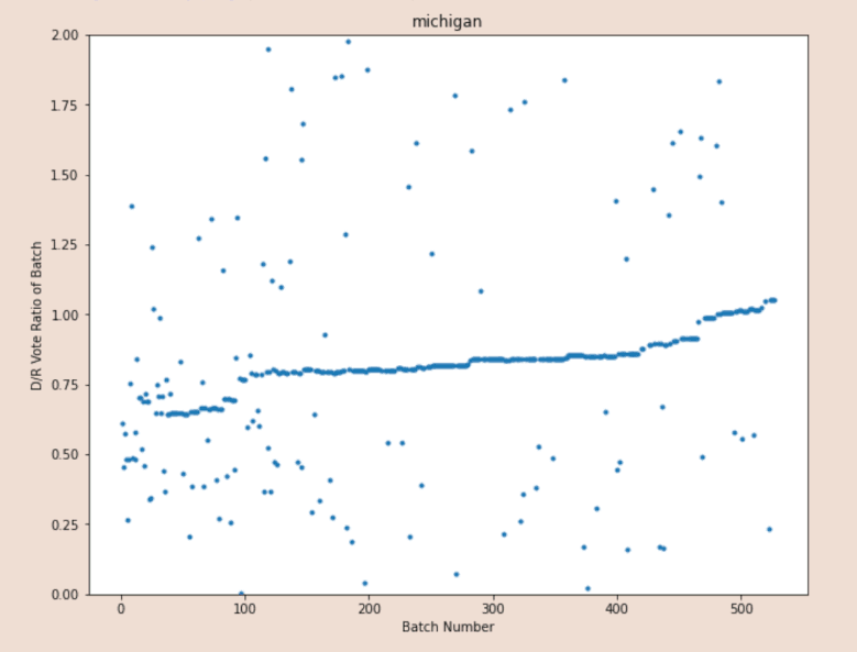 In Michigan, we see a combination of Wisconsin strangeness, together with the GA/PA weirdness. We see both signs of contaminated ballot dumping, and ballot ratios drifting toward dems when they should not be. https://t.co/kYdAuDqKyZ