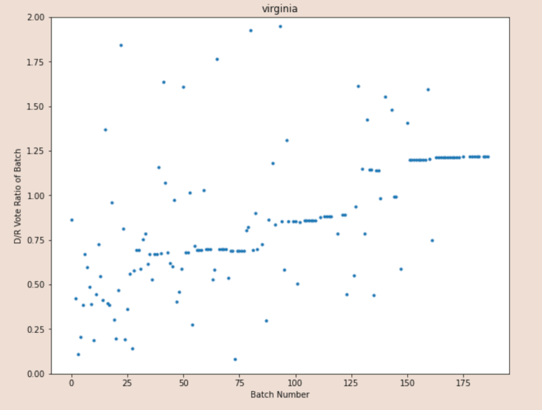 Now in fairness, VA is the only state out of the 50 that has anomalies but has not had accusations of voter fraud, yet. I think this is the exception that proves the rule. Yet to figure out what causes this anomalous shift, but here it is so no one accuses me of holding it back.