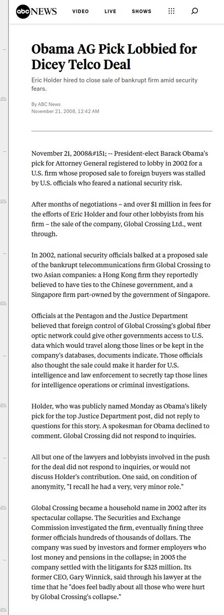And it involves the highest levels of government and industry. GLOBAL CROSSING'S BOARD HAD WILLIAM COHEN (SECRETARY OF DEFENSE UNDER BILL CLINTON), ELENA LAGOMASINA (CEO OF JPMORGAN), AND RICHARD PEARLE (ASSISTANT SECRETARY OF DEFENSE UNDER REAGAN) https://archive.is/UCJ8V