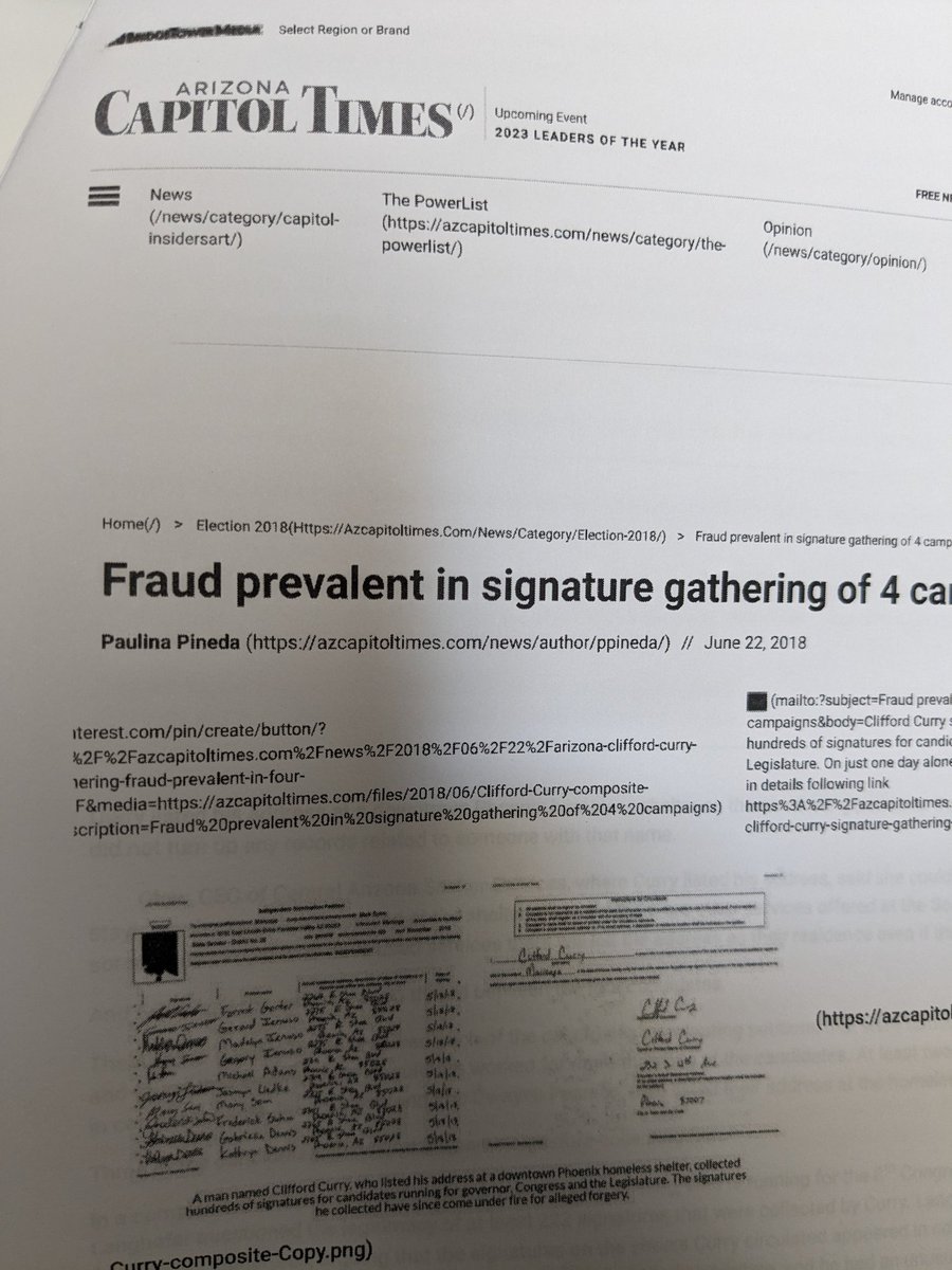 Below is Evidence @BlehmLawAZ attempted to use in Cross Examination of County Recorder Stephen Richer in the @KariLake Records Request Trial Sept 21, however he was never given the chance to show the public availability of signatures for election purposes. Individuals here in AZ were convicted of signature fraud on petitions for local candidates. The news media had NO Problem posting those Signatures in their News Stories. See attorney Blehm's post below: Attorney Bryan Blehm writes, "I am amazed that those in the mainstream media have no problem publishing stories, complete with signatures, about signature fraud in petition circulation but won't touch ballot affidavit envelope signature fraud, ie., voter identity theft, with a 10,000-ft pole. Anybody in the mainstream media want to explain why? I mean heck, I might even be able to point you to thousands of bad signatures. All you really need to do is ask." Do we have any News Journalist's willing to take up @BlehmLawAZ's offer? Please contact attorney Blehm or myself. Special thanks to Stacey Barchenger @sbarchenger of the Arizona Republic for her fair & balanced Frontline News Story. - See picture below @GeorgeNemeh @laralogan @lauragersony @LauraLoomer @TuckerCarlson @glennbeck @stevebannon_1 @annvandersteel @TheFederalist1 @nypost @bennyjohnson @ConradsonJordan @ClayTravis @clayandbuck @JohnBWellsCTM @MariaBartiromo @Rach_IC @tracybeanz @ArizonaSunTimes @PrisonPlanet @csthetruth @ShepardAmbellas @intellihubnews @gatewaypundit @DailyWireNews @AZFreedomCaucus @abc15 @TheAmericaProj @realMikeLindell @rational_please @EricSpracklen @America1stLegal @Restoring_USA @thelegaleasepod