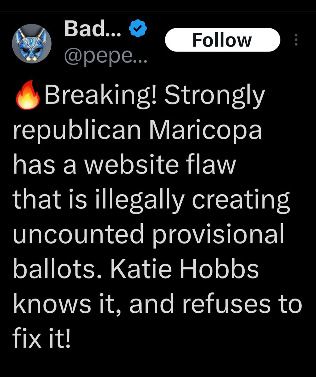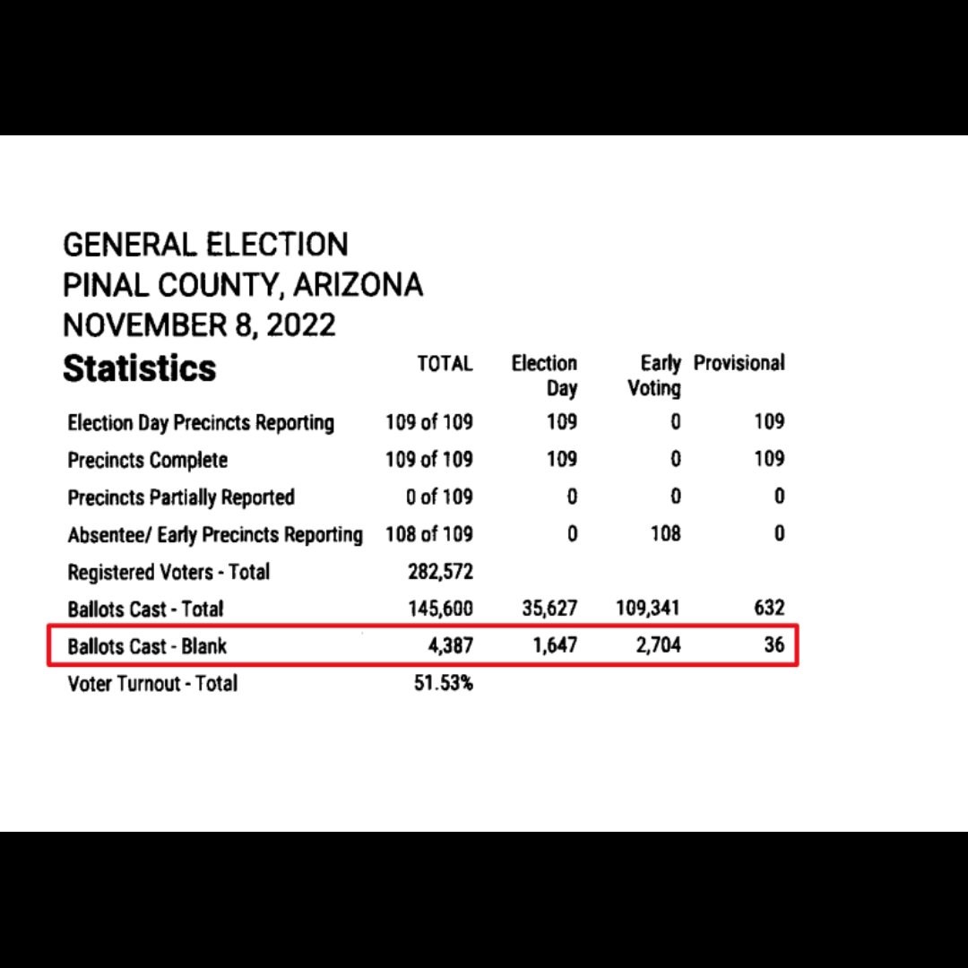 🚨Illegal criminal activity has been uncovered in AZ Pinal County during the 2022 Election. ⚜Numerous blank ballots were discovered during the mandatory machine recount & hidden votes for Abraham Hamadeh. This information was illegally withheld by Gov Katie Hobbs before Hamadeh's trial. Also 1000's of provisional ballots still remain to be counted across AZ which would give Abe Hamadeh the victory. ⚜We need a criminal investigation ordered by Pinal County Sheriff Mark Lamb. @sherifflamb1 Read: Blank Ballots ⬇️ https://twitter.com/Rach_IC/status/1730659888039424005?s=19… Watch: When did Gov Katie Hobbs know about the blank ballots?⬇️ https://twitter.com/JenWEsq/status/1616922676895043586?s=19… Read:⬇️ @WethePeopleAZA1 Statement on blank ballots: https://twitter.com/WethePeopleAZA1/status/1725636496672399537?s=19… Read: Provisional Ballots being illegally created in Maricopa County ⬇️ https://twitter.com/pepesgrandma/status/1707424546737852826?s=19… @WendyRogersAZ @Rach_IC @BrianTerry180 @BrianFerence1 @LizHarrisMBA @GeorgeNemeh @KariLake @AbrahamHamadeh @RealSheriffJoe @cc_sheriff @anthonykernAZ @RealMarkFinchem @realDonaldTrump @RealAlexJones @KimWexlerMAJD @votewarren @Wadsack4Arizona @AzPinkLady @BarnettforAZ @MaricopaGOP @forloveofJ @ConradsonJordan @BehizyTweets @Timcast @elonmusk @joerogan @P_McCulloughMD @MarcoPolo501c3 @JenWEsq @realAlexKolodin @Nehemia48881476 @kstewskisAZ @habibianalytics @SRSZink @azaustinsmith