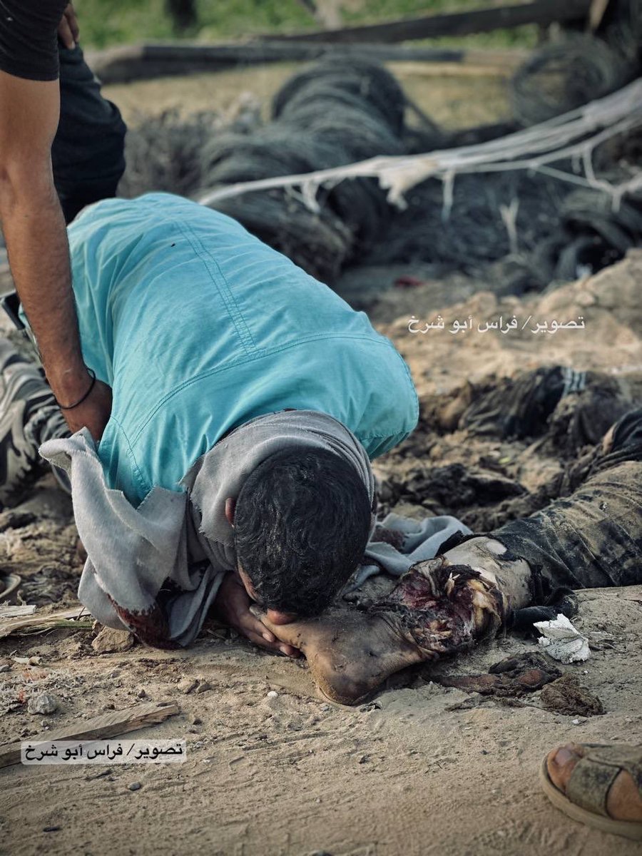Siyonist terörist köpeklerin bombalamasından sonra oğlundan geriye kalan yalnızca ayakları idi. Son kez öpebileceği tek şey oğlunun ayakları idi. #StopGazaGenocide https://t.co/7IGKoM1hqU