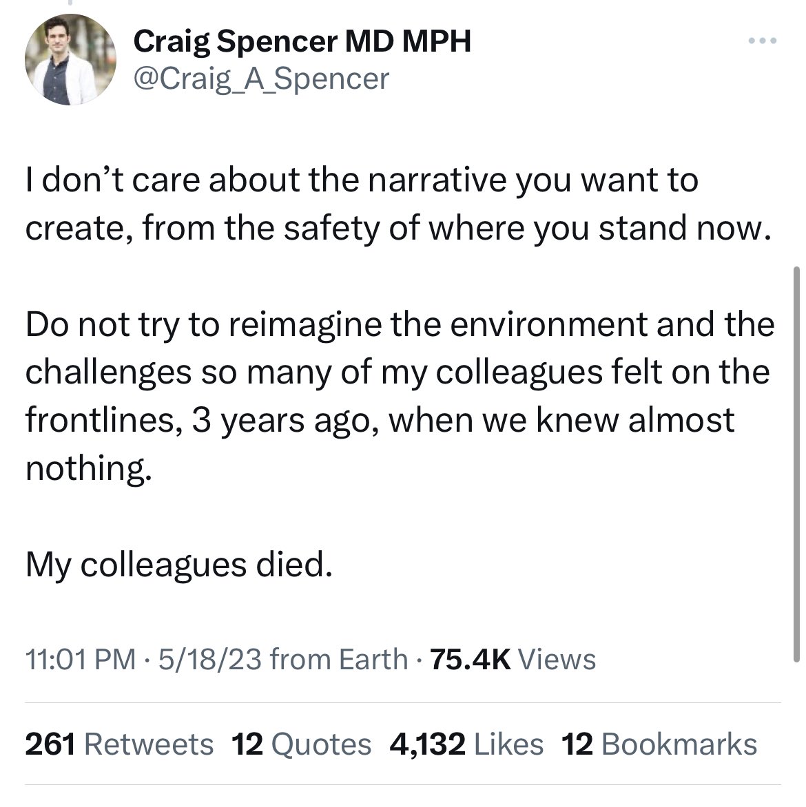 Hey, Dr. Spencer, funny story: know what mortality risk doctors faced during Covid - compared to the average American? Average people had 13 TIMES the excess death rate as doctors in active practice. So please, spare us your profiles in courage.