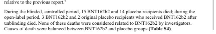 The pivotal clinical trial for the @pfizer #Covid vaccine shows it does nothing to reduce the overall risk of death. ZERO. 15 patients who received the vaccine died; 14 who received placebo died. The end. The trial blind is broken now. This is all the data we will ever have.