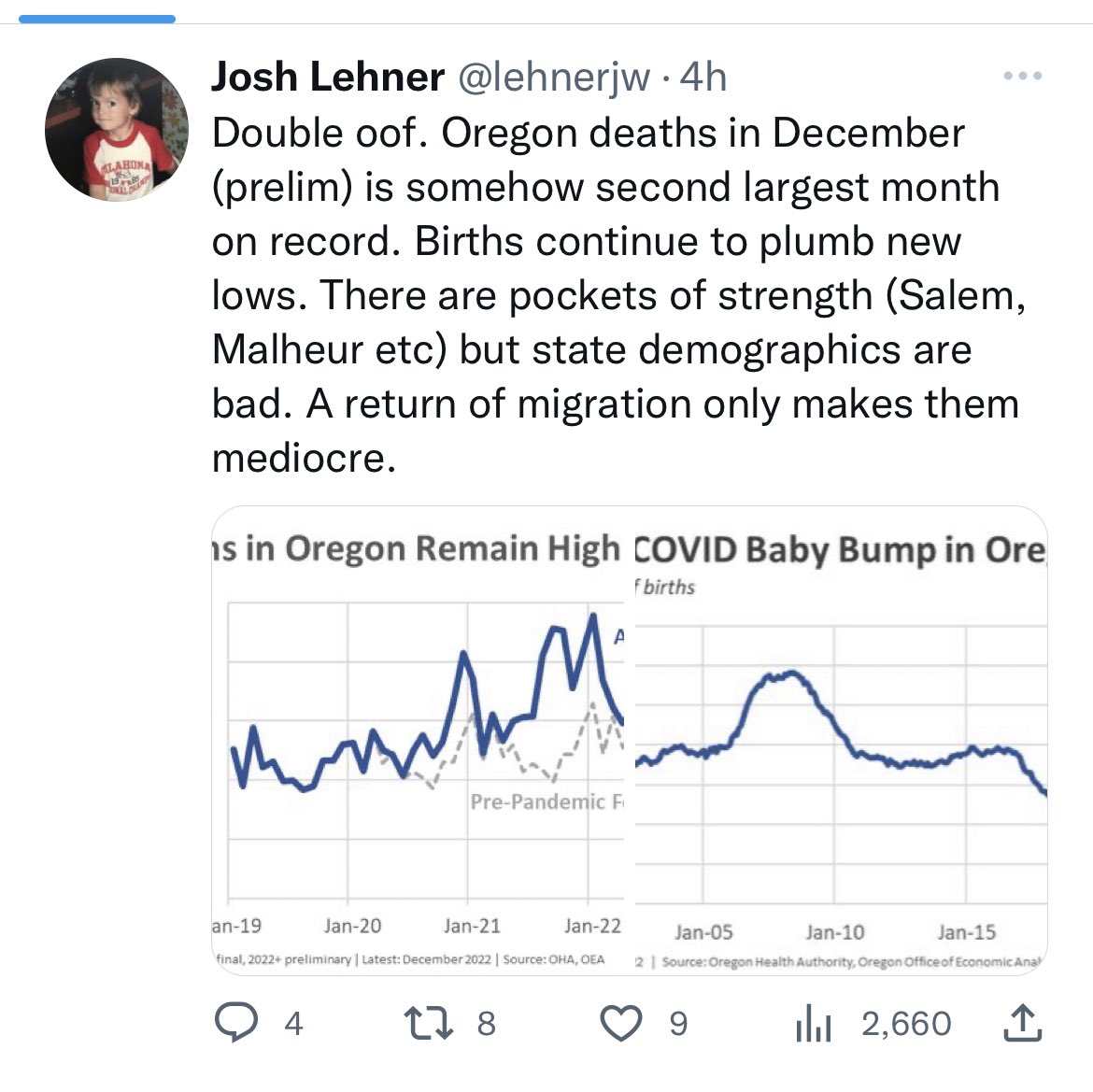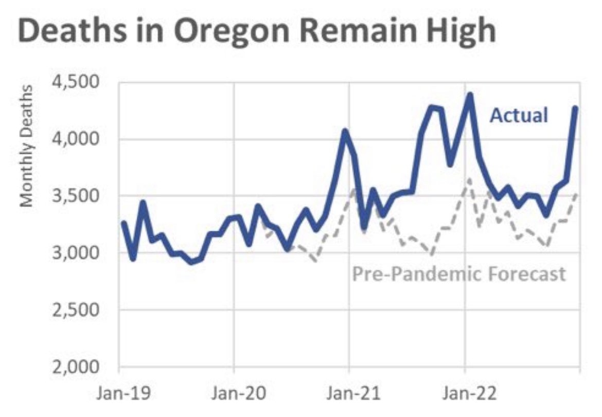 Stop me if you’ve heard this before: all-cause deaths in a place that used tons of mRNA and had a relatively light Covid outbreak in 2020/21 are running FAR above normal. The difference: this time the place is in the US. Oregon, to be precise. Maybe now the media will notice?