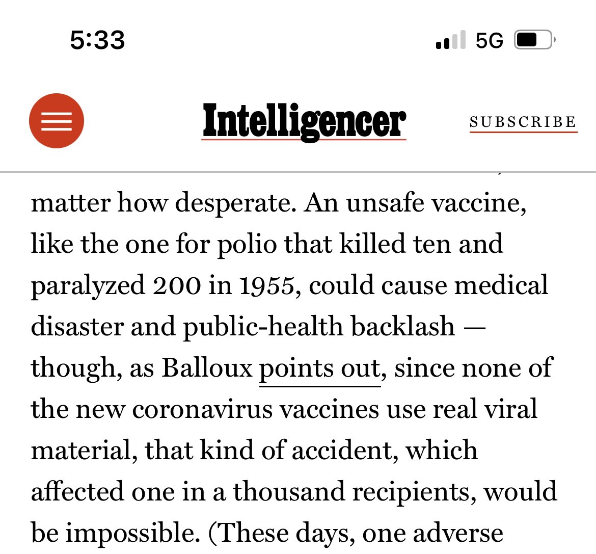 But two years later, this story is stunning. The incredible arrogance of the vaccine fanatics is on full display. They truly believed the mRNAs had beaten Covid - they were mainly frustrated the jabs hadn’t had even FASTER development… https://nymag.com/intelligencer/2020/12/moderna-covid-19-vaccine-design.html?fbclid=IwAR1P1Lqgy-Fqx3zChV1CQ104H9xDpXQIeQnk8UgtegeurP53plORdI6Jyb0