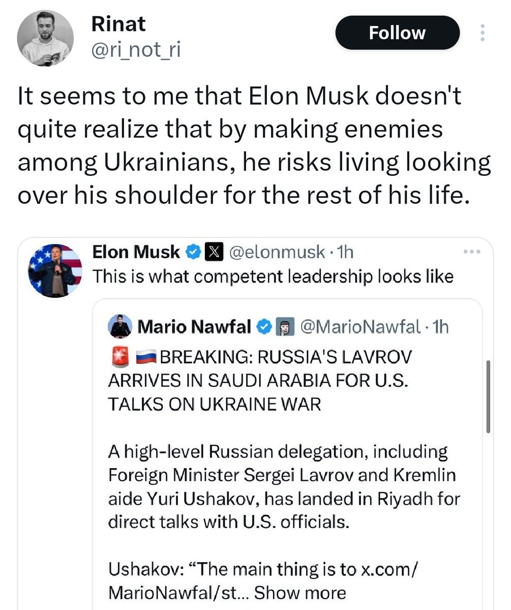 First of all, a 1 to 14 ratio is nearly impossible to keep up with, especially for the attacking force. Do you actually believe the Kremlin would take such casualties without ramping up retaliations against Kiev? Yet we have seen none of that, meaning it's sustainable. 2/12