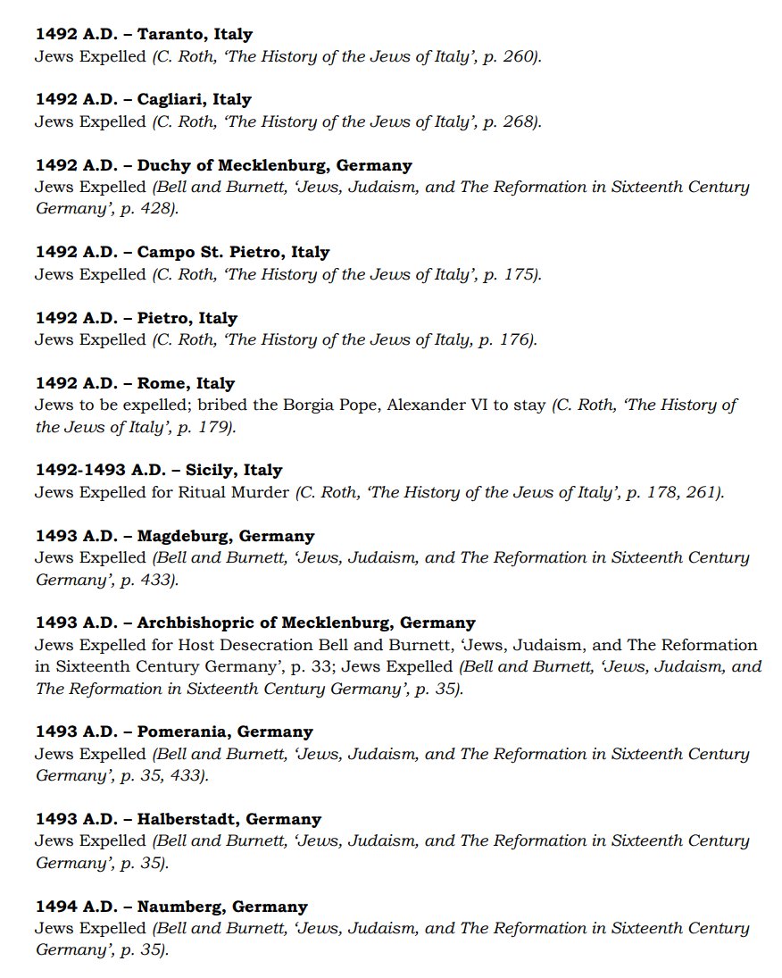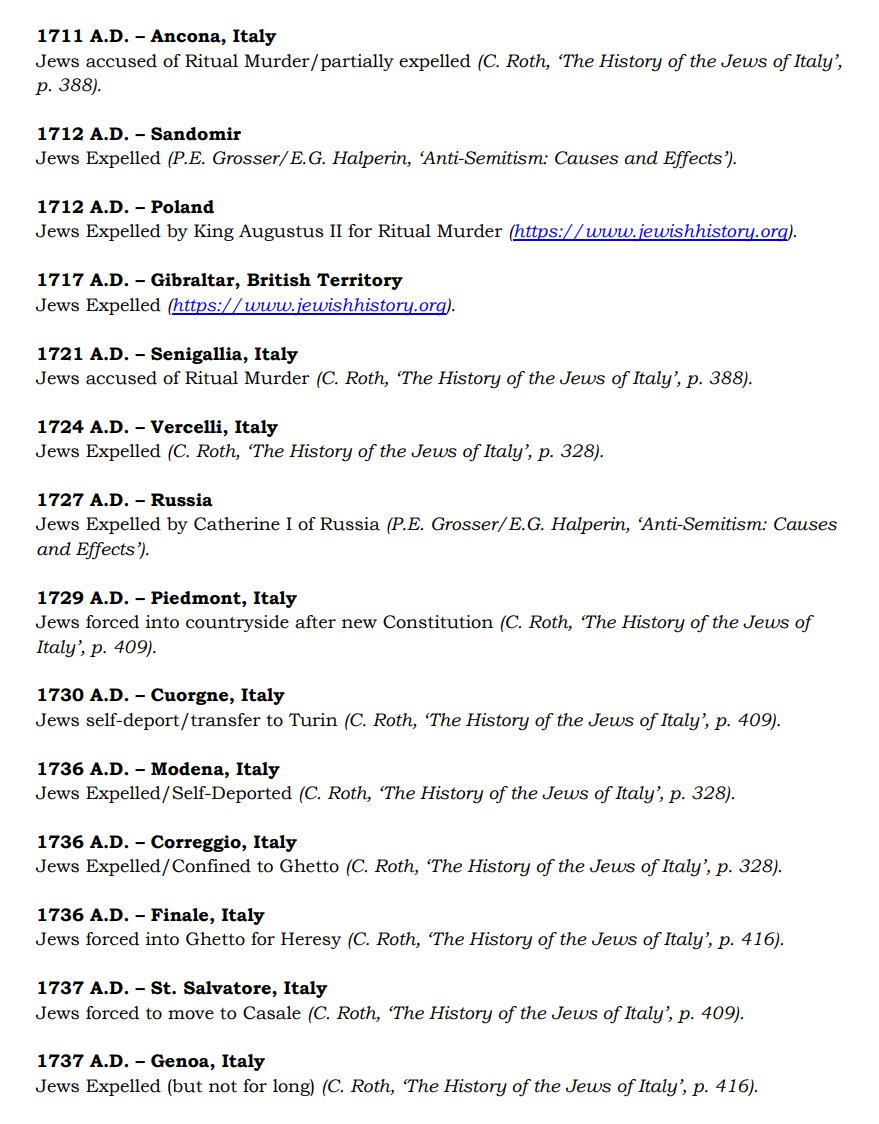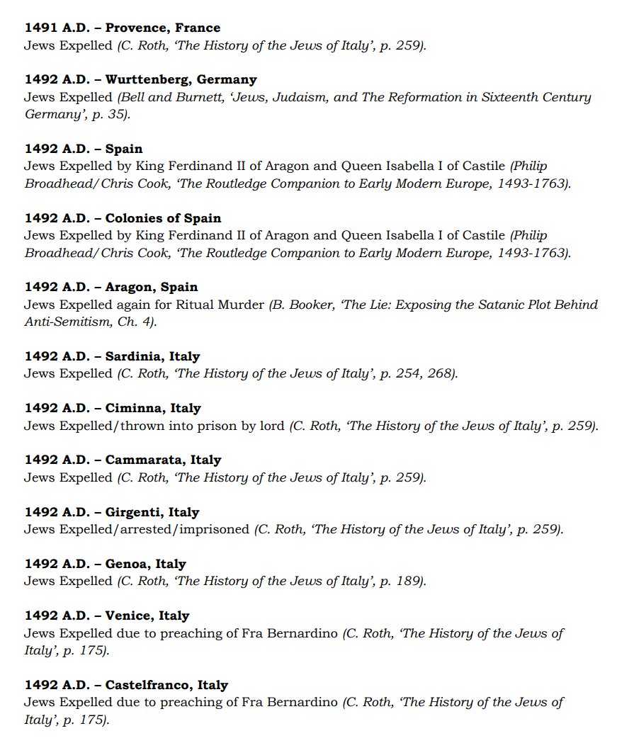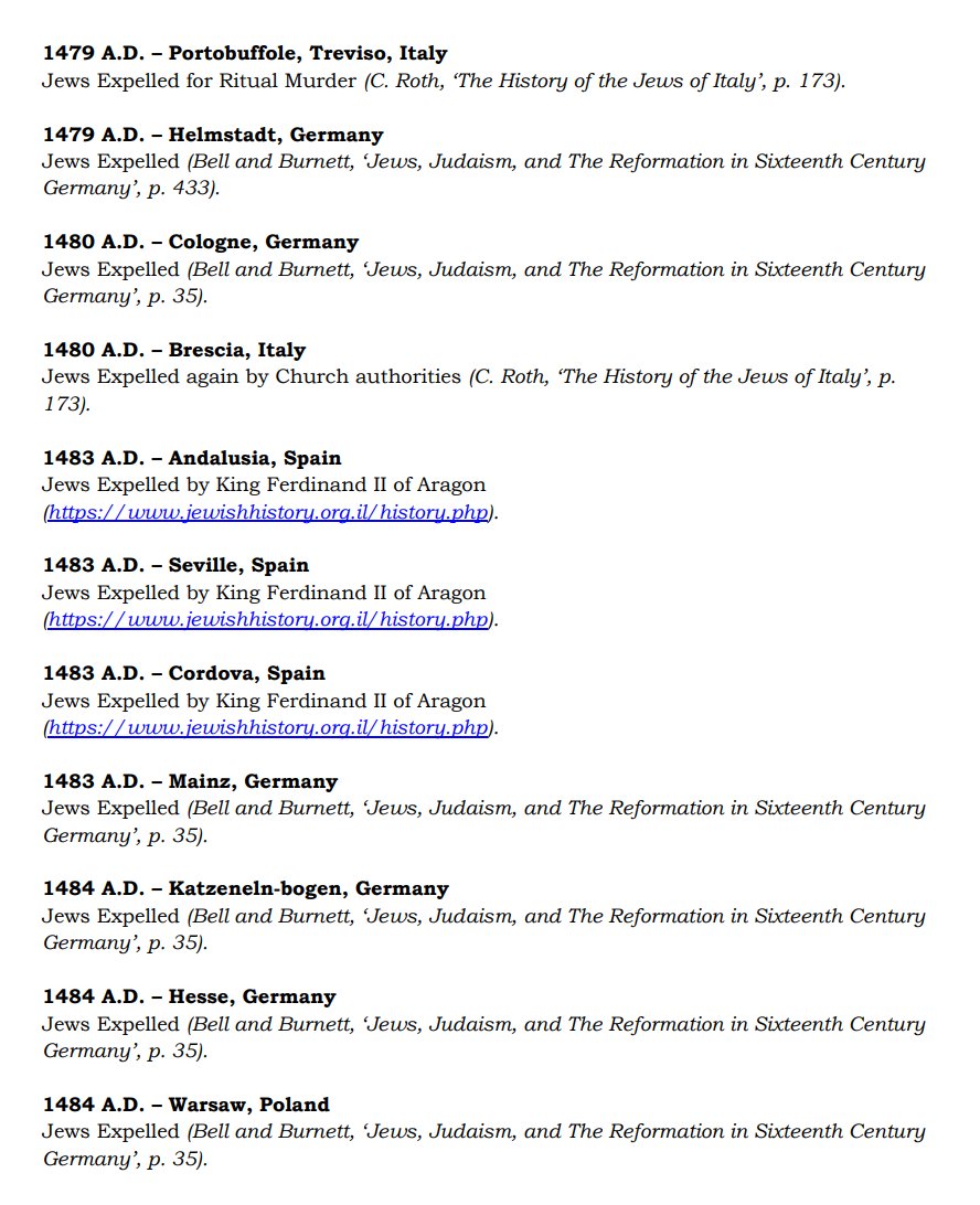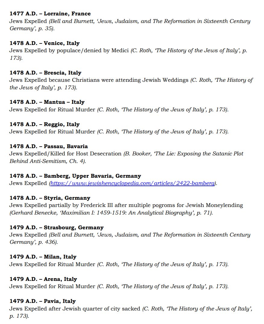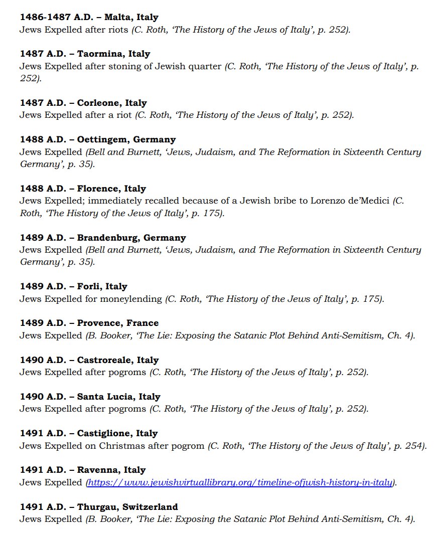 The ✡️'s expulsion from Italy due to the ritual murder of St. Simon of Trent, would make the list of 1,030 different expulsions over the course of history. 7/15 https://x.com/Amaleks_Rising/status/1745859688099426441?s=20 https://t.co/7hqvR6yRCM
