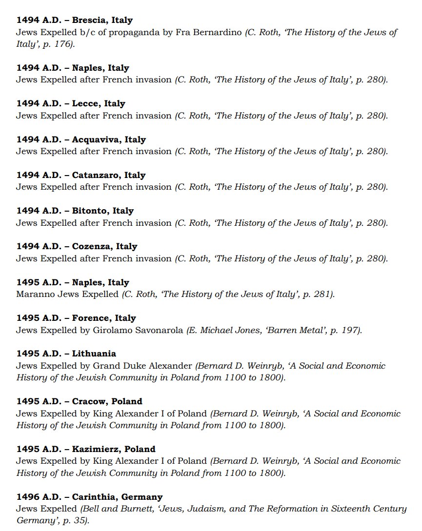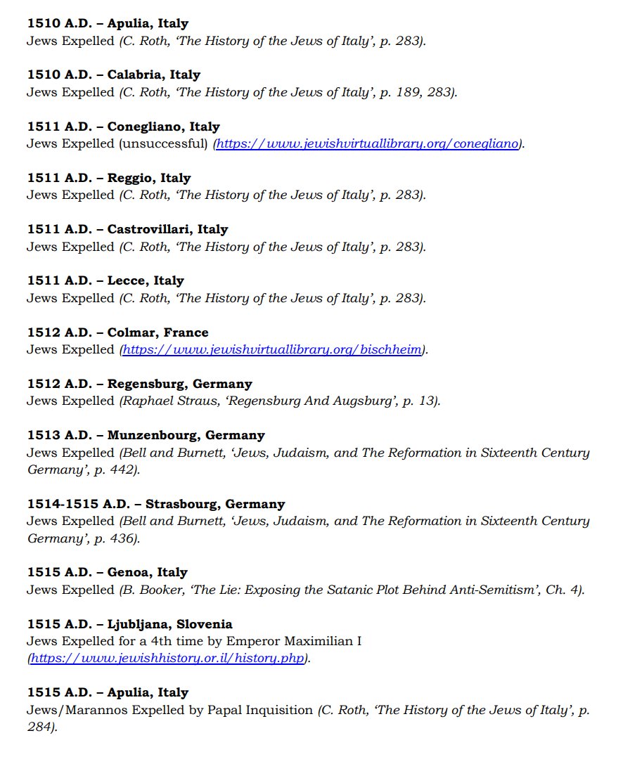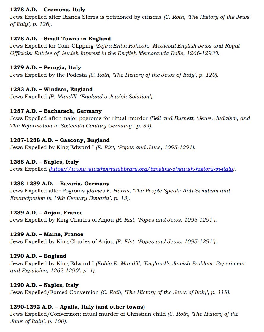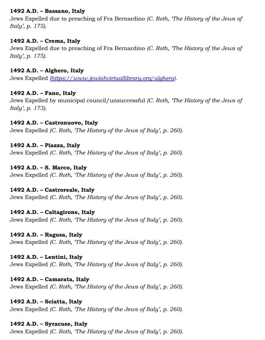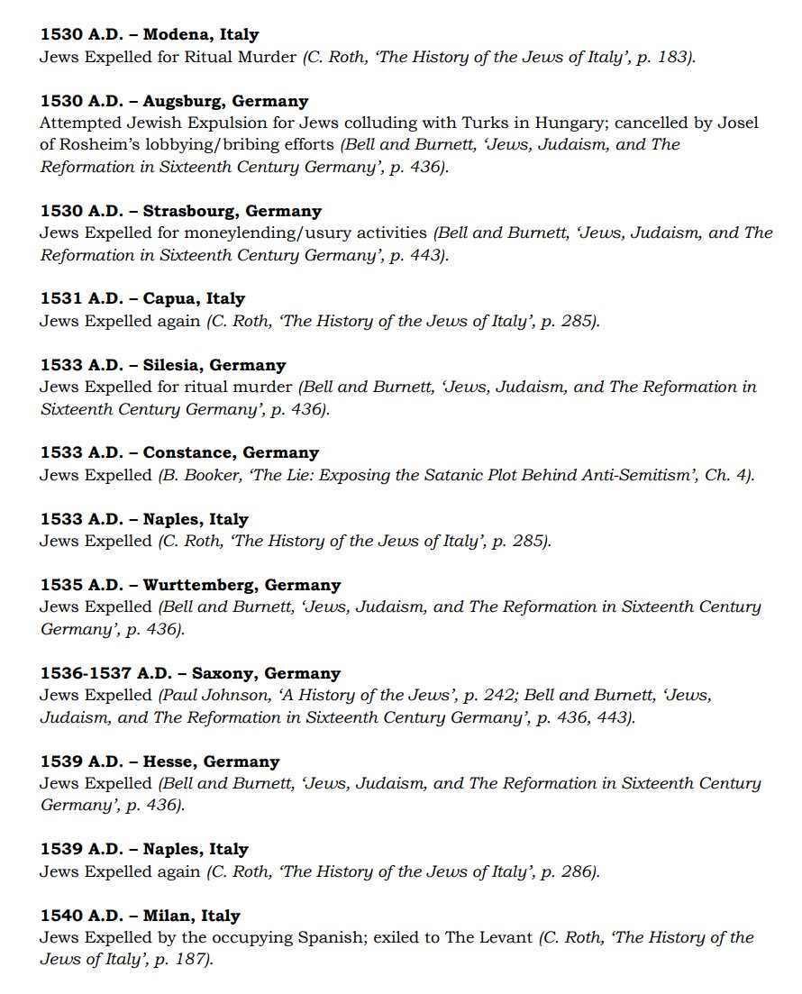 The ✡️'s expulsion from Italy due to the ritual murder of St. Simon of Trent, would make the list of 1,030 different expulsions over the course of history. 7/15 https://x.com/Amaleks_Rising/status/1745859688099426441?s=20 https://t.co/7hqvR6yRCM