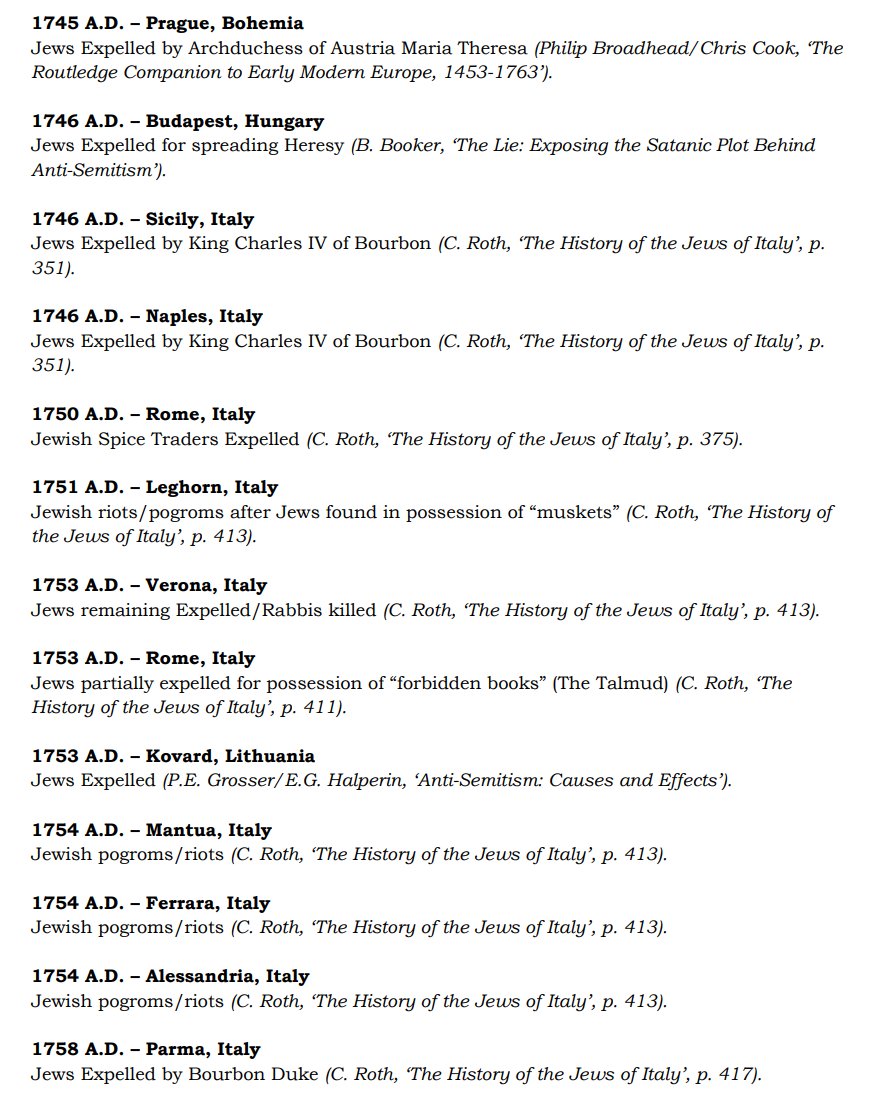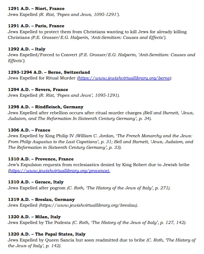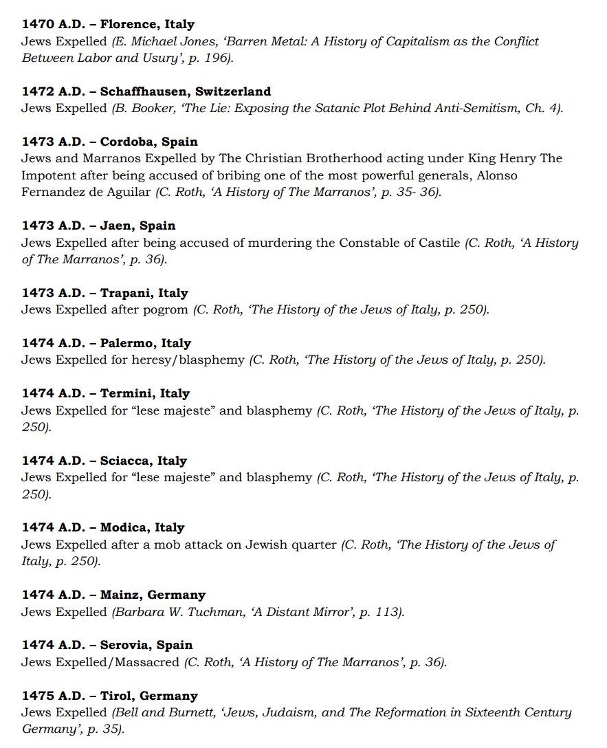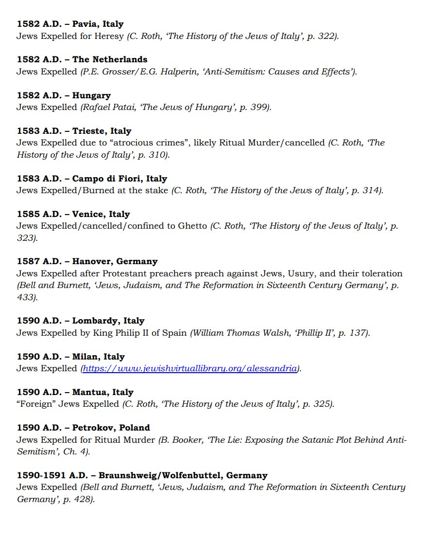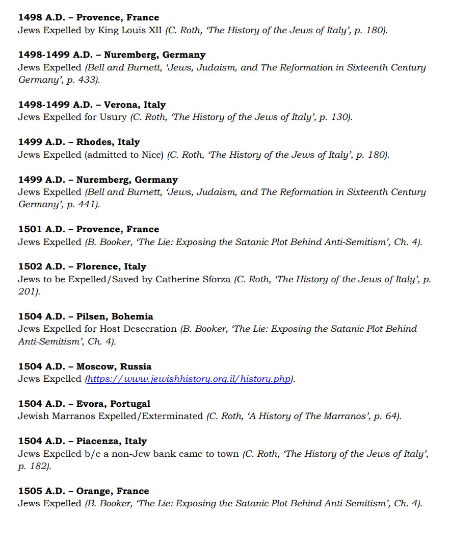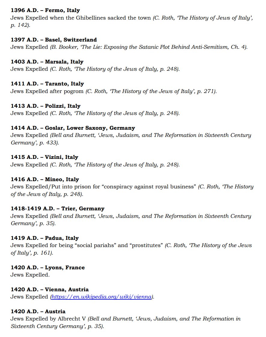 The ✡️'s expulsion from Italy due to the ritual murder of St. Simon of Trent, would make the list of 1,030 different expulsions over the course of history. 7/15 https://x.com/Amaleks_Rising/status/1745859688099426441?s=20 https://t.co/7hqvR6yRCM