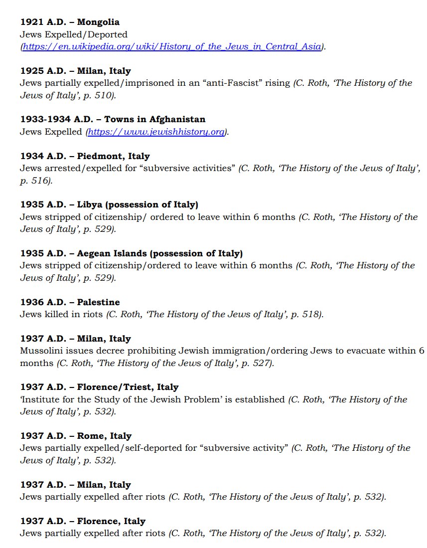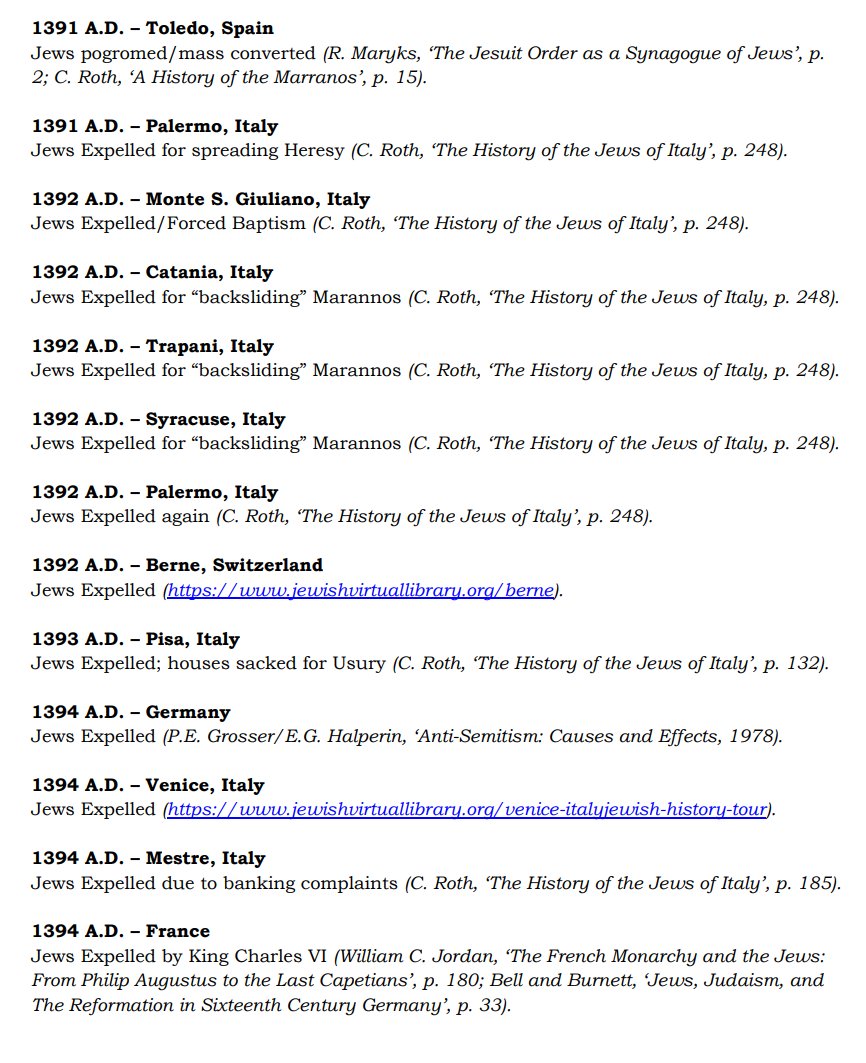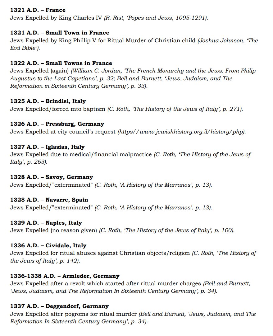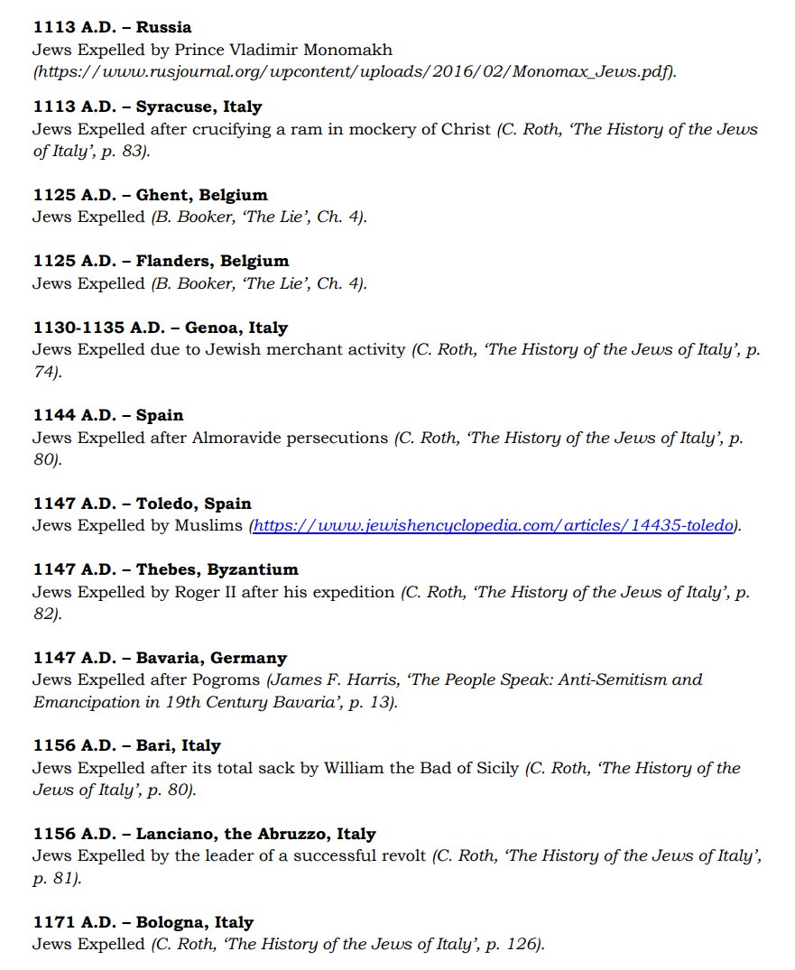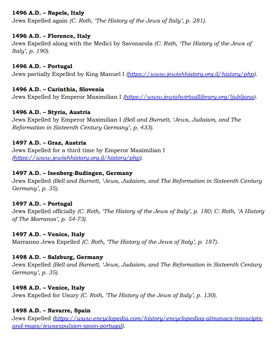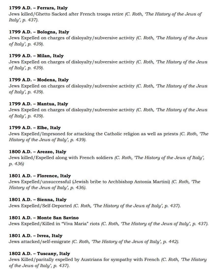 The ✡️'s expulsion from Italy due to the ritual murder of St. Simon of Trent, would make the list of 1,030 different expulsions over the course of history. 7/15 https://x.com/Amaleks_Rising/status/1745859688099426441?s=20 https://t.co/7hqvR6yRCM