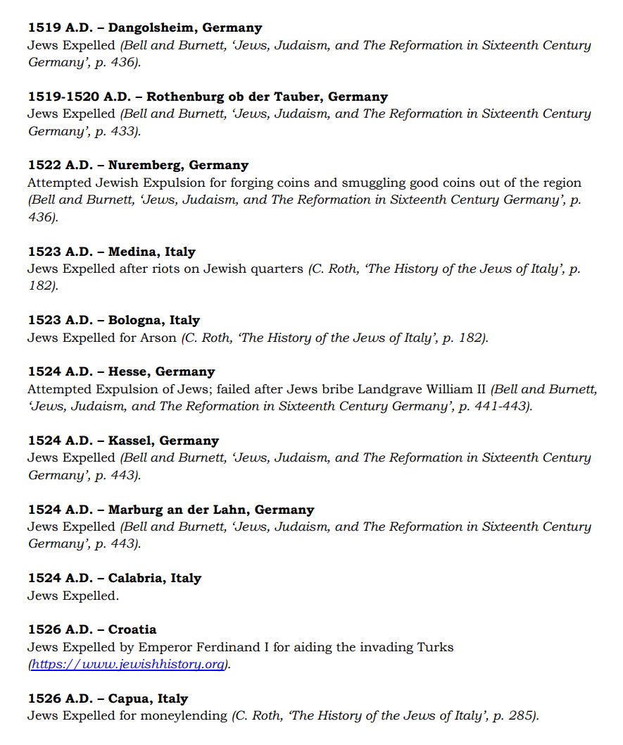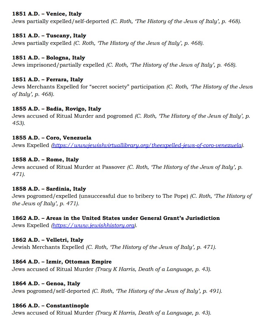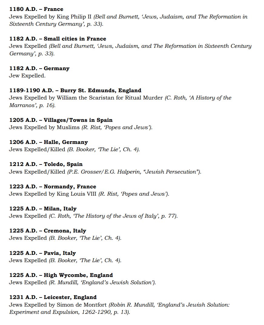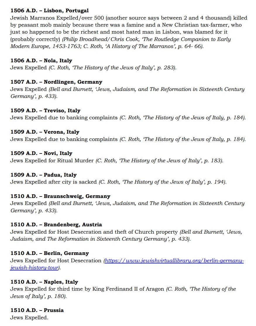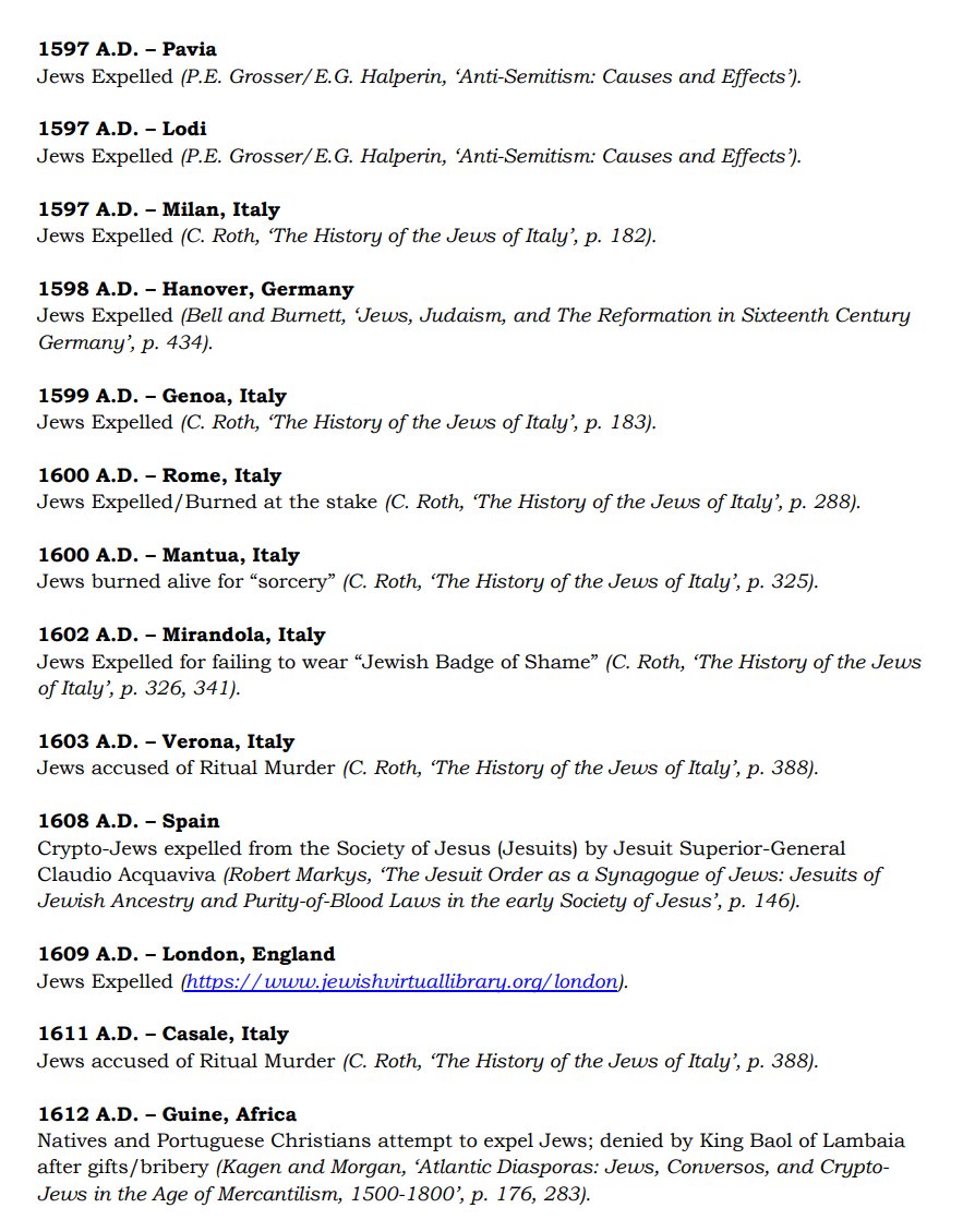 The ✡️'s expulsion from Italy due to the ritual murder of St. Simon of Trent, would make the list of 1,030 different expulsions over the course of history. 7/15 https://x.com/Amaleks_Rising/status/1745859688099426441?s=20 https://t.co/7hqvR6yRCM