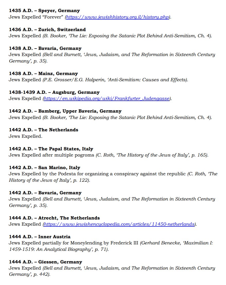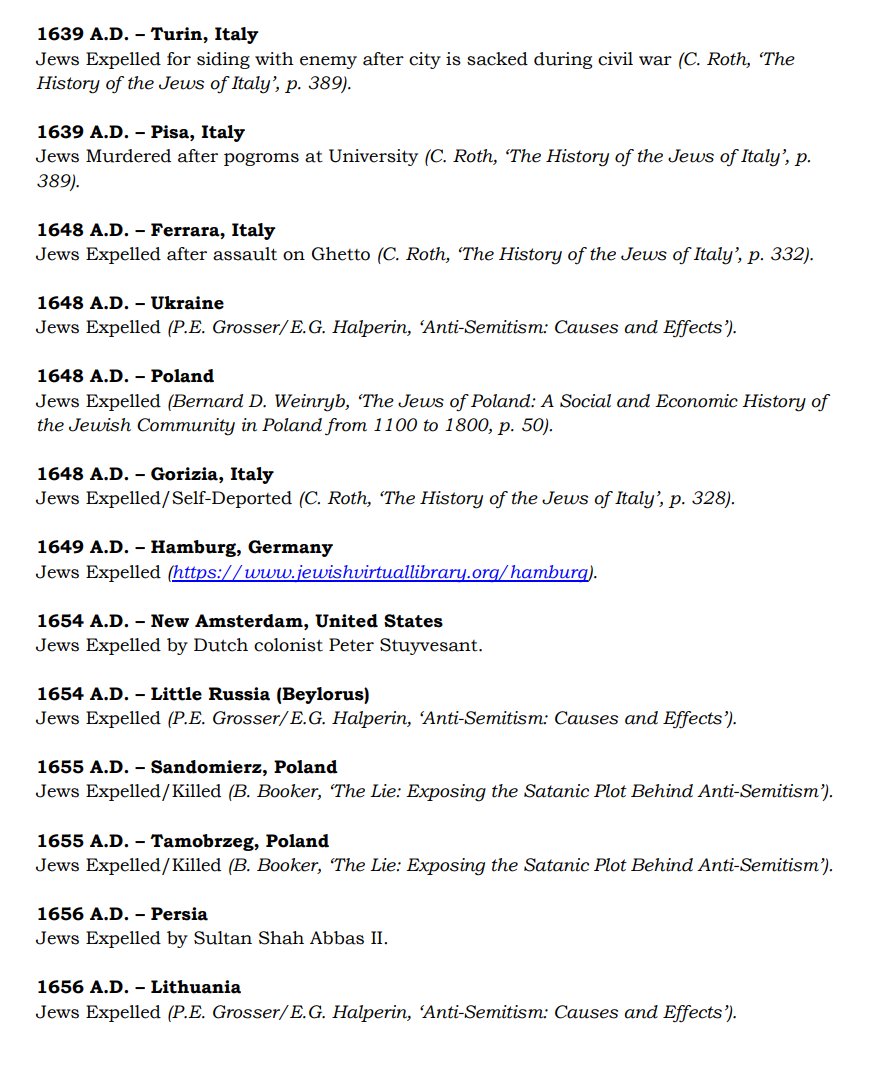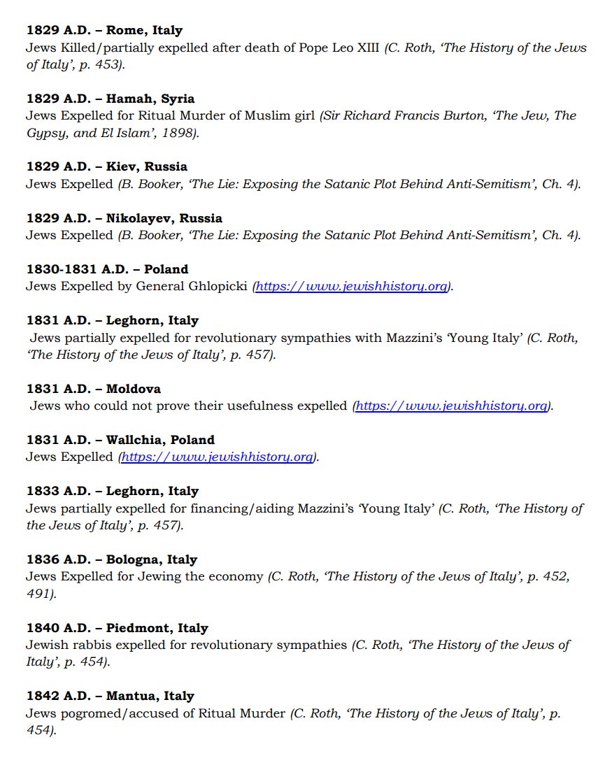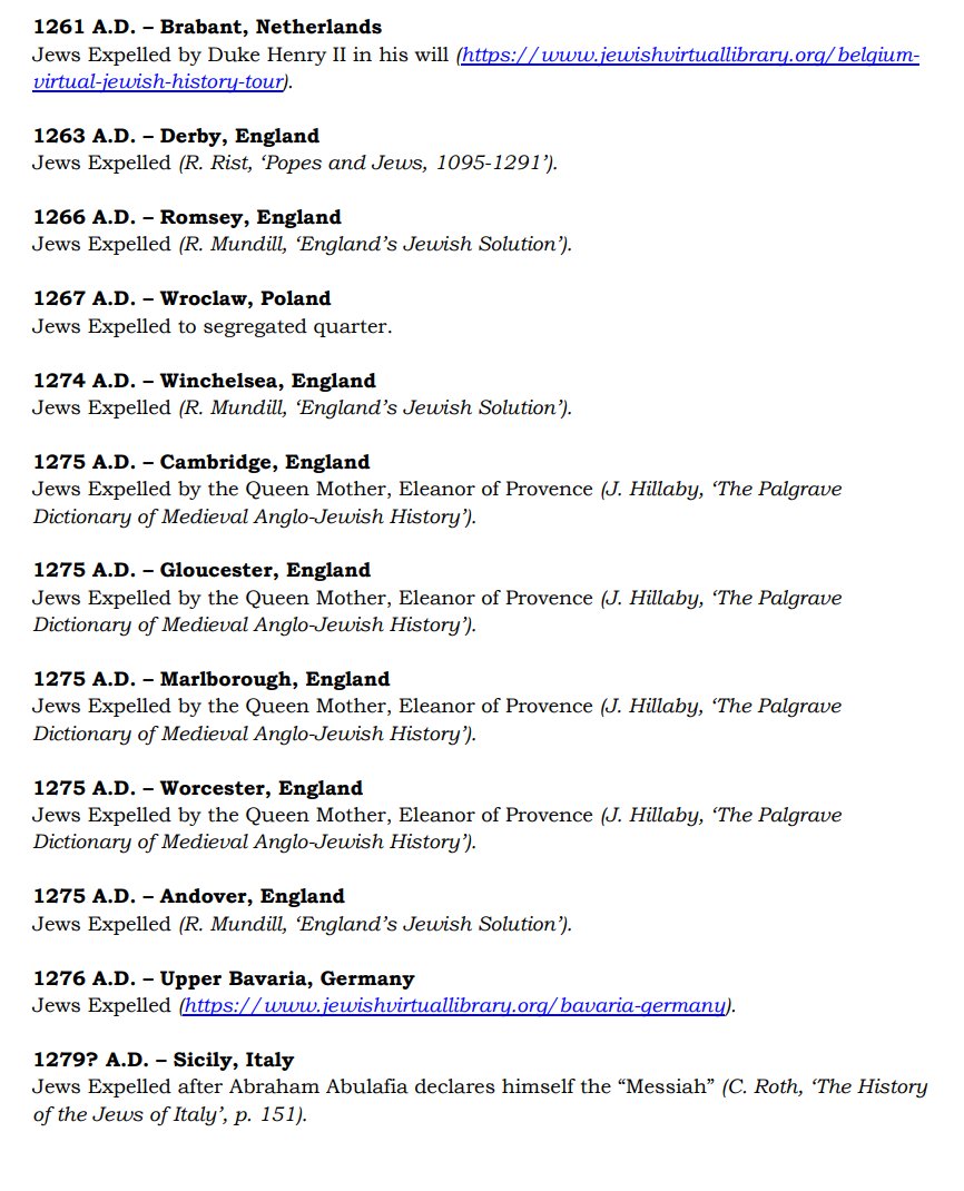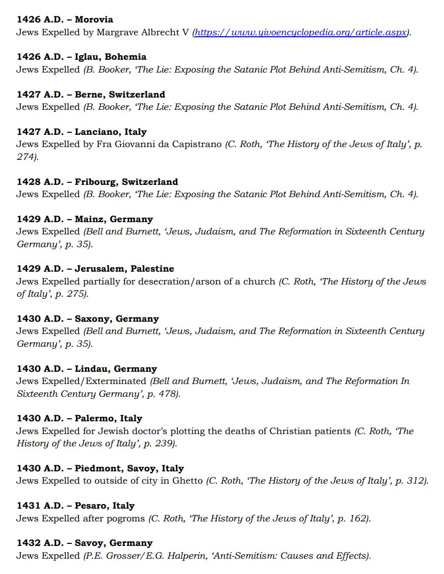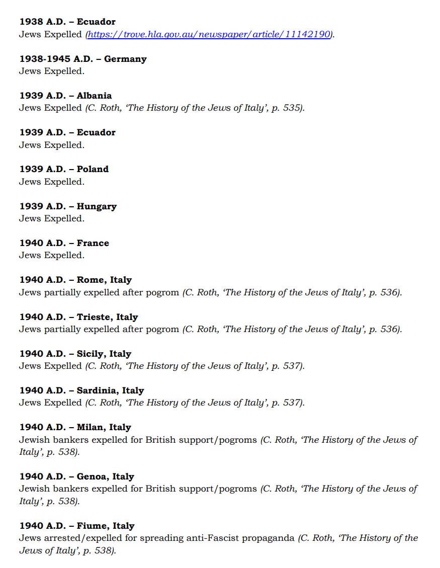 The ✡️'s expulsion from Italy due to the ritual murder of St. Simon of Trent, would make the list of 1,030 different expulsions over the course of history. 7/15 https://x.com/Amaleks_Rising/status/1745859688099426441?s=20 https://t.co/7hqvR6yRCM
