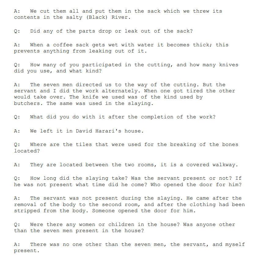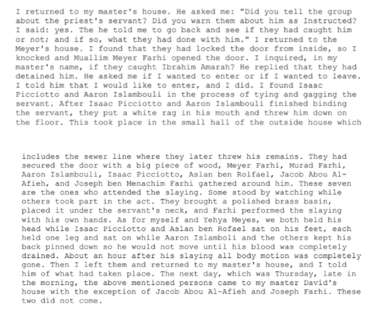 7/18 Testimony from Isaac Harari: 'We slew him for his blood, and we put his blood in a glass bottle at rabbi Abou Al-Afieh's house, according to the teachings of our religion. The essence of the matter was to obtain the blood because this is what our religion demands of us."