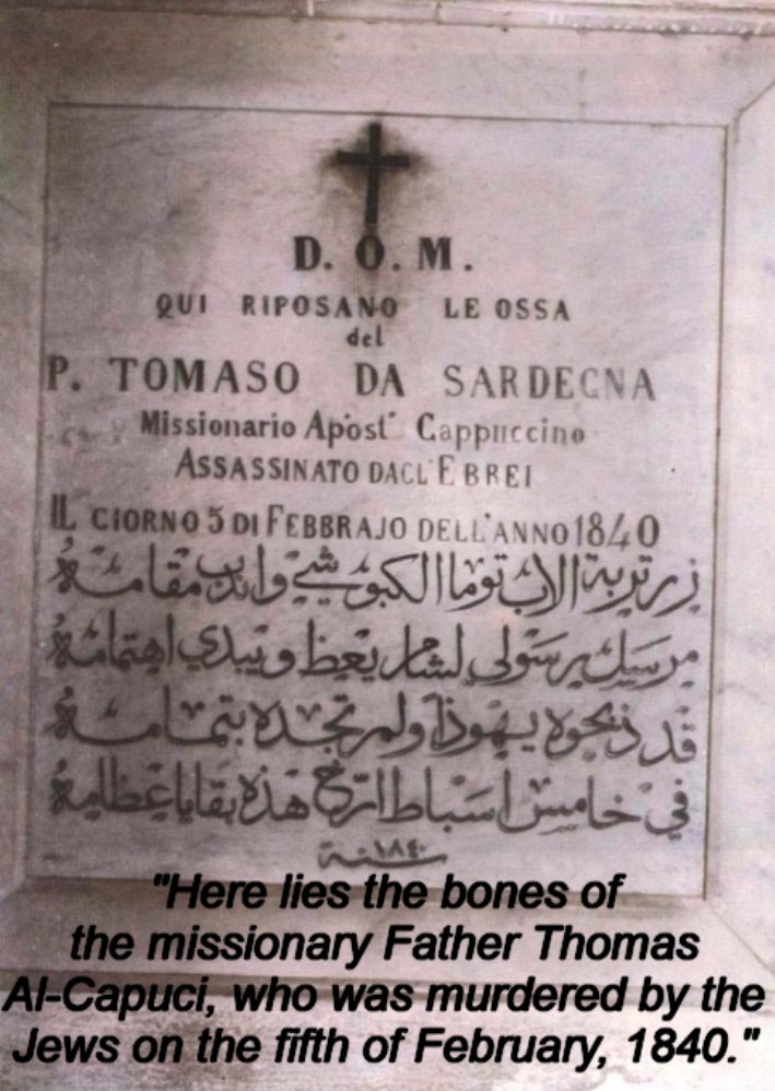 1/18 The Damascus Affair of 1840 J0oish ritual murder of Father Thomas, an Italian Christian monk belonging to a Franciscan Capuchin friar from the Island of Sardinia, and his muslim servant Ibrahim Amara. A thread: