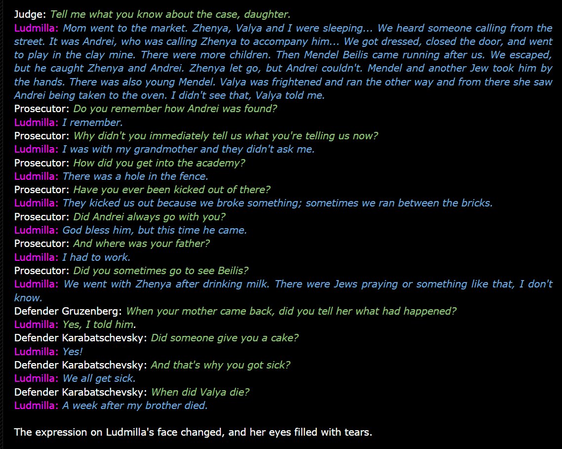 6/ Valya, Zhenya and Ludmilla, stated that on March 12th, 1911, Andrei asked them to go with him to play in the clay pit. Once there, a ✡️Beilis caught Zhenya and Andrei. Zhenya broke free, but Beilis, along with two other newly arrived Jews, took Andrei inside a near factory. https://t.co/a6E6hxCHTa