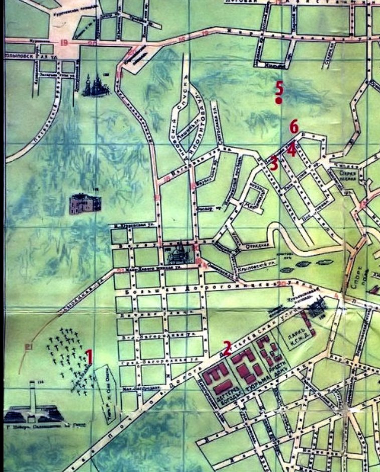 9/ 1. Lukianovka Cemetery. 2. Kiev Provincial Prison. 3. Vera Cheberyak's (mother of the 3 children) house. 4. House of ✡️Beilis. 5. Cave where Andrei's body was discovered. 6. ✡️Zaitsev brick factory, where Andrei disappeared. https://t.co/5ZpWYIdufk