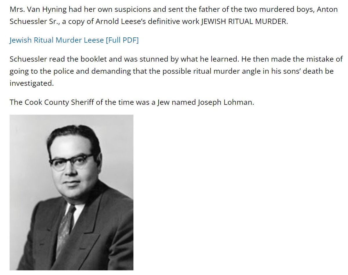This same book was sent to a father whose sons were ritually murdered in Chicago in 1955. After reading Leese's book, the father was convinced that his sons were also victims of ✡️ish ritual murder. You can read this story here. 👇 15/ https://christiansfortruth.com/flashback-1955-unsolved-jewish-ritual-murder-of-5-chicago-children/