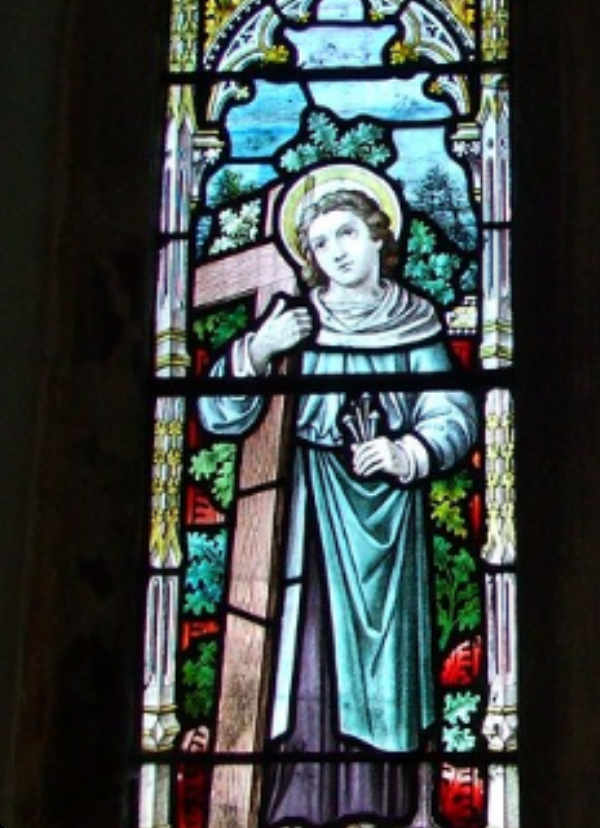 Early 20th Century stained glass window of St. William of Norwich in the Chancel of St Edmund Church in Fritton, nr Great Yarmouth, Norfolk. 17/