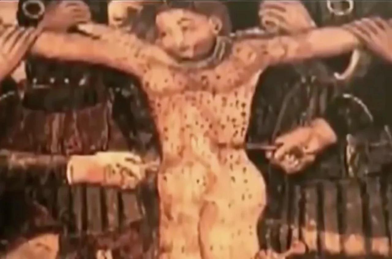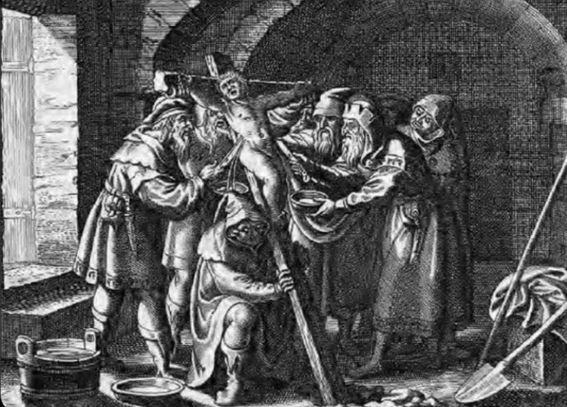 A servant of the ✡️'s testified that she caught sight through a crack in a door of a boy fastened to a post, as she was bringing some hot water at her master’s order. 7/