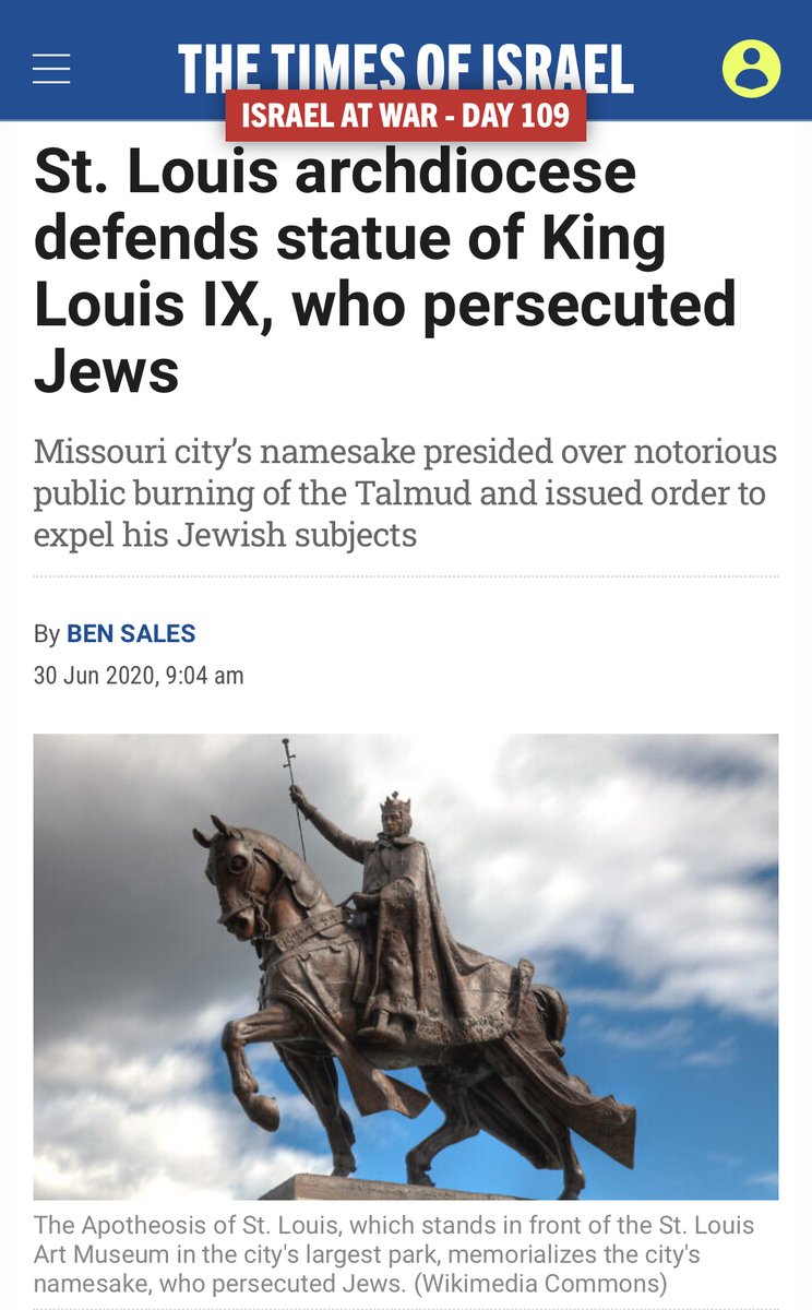Unsurprisingly, in 2020, protesters ✡️called for the removal of King Louis IX's statue. 6/9 https://t.co/UFB3NGTPz6