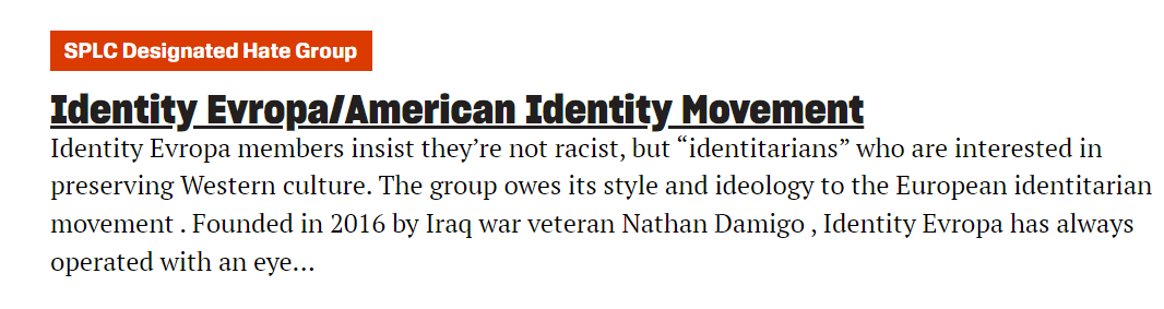 Identity Evropa because the biggest threat to j0os is Europeans who want to preserve their race and their culture. https://t.co/5lsdYFzkU3