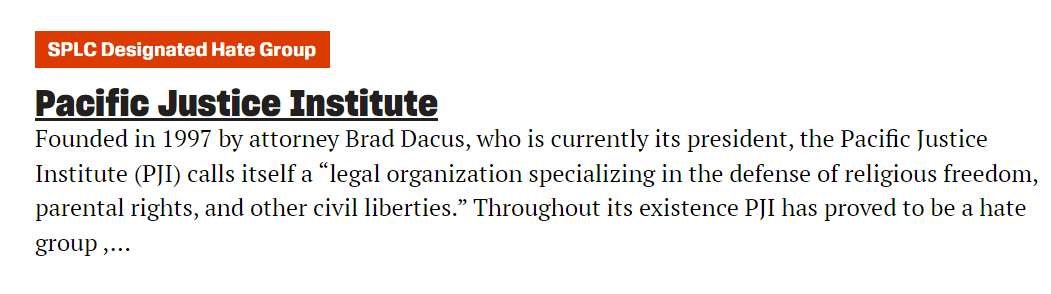 The Pacific Justice Institute is a legal organization specializing in the defense of religious freedom, parental rights, and other civil liberties and is anti-LGBT. The group also represents workers opposed to their employers' j0osh vaccine mandates. https://t.co/99BzONZmjq