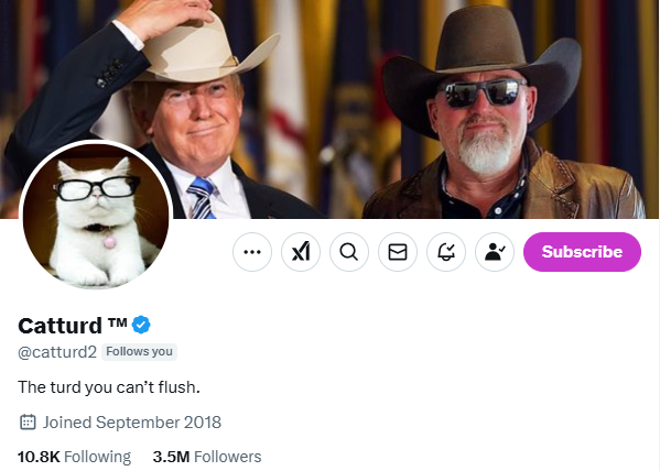 7. Catturd (@catturd2 ) A man that needs no introduction. Catturd may be one of the most influential people in the MAGA movement. Any time he wants to get something trending he will! https://t.co/LQkbcuBokz