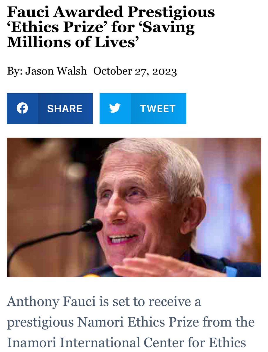 IF OBAMA GETS NOBEL PRIZE & FAUCI THE NAMORI ETHICS PRIZE, WILL HAMAS GET THE 2024 GOLDA MEIR AWARD FROM NAAMAT? While the Son of Hamas and the Son of the WEF founder are exposing Hamas and Obama-Gates’ WEF as genocidal maniacs, Soros funded groups take the opposite tact and give awards to Hamas and Fauci! https://www.dailyfetched.com/fauci-awarded-prestigious-ethics-prize-for-saving-millions-of-lives/