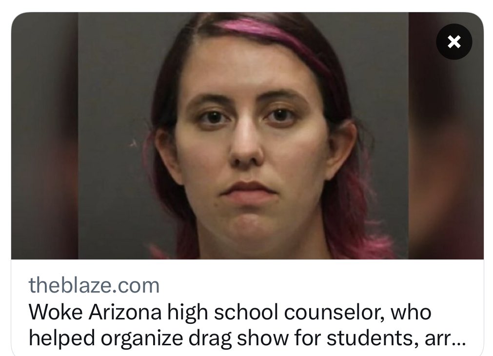 BREAKING NEWS Woke Arizona High School Counselor, who helped organize drag show for students, arrested and accused of having sex with 15-year-old girl. We’ve been told that teachers talking to kids about sex (fantasies, orientation) doesn’t lead to grooming! Katie Slobbs supports Teachers Unions grooming of children and vetoed legislation that protects kids from sexual predators. We were told that Teachers talking to kids about their sexual orientation aren’t groomers. Is anyone surprised that teachers talking to kids on the daily about their sexual identity and fantasies turn out to be PEDOPHILES? As soon LGBTQ+ kicked out @againstgrmrs, it became a Groomers Club. All non-groomers can agree that Teachers have NO BUSINESS talking to little kids about their sexual fantasies. But the DNC and LGBTQ+ love grooming. The teacher Zobella Brazil Vinik, 29, and a 15-year-old student at Tucson High Magnet School, had a sexual relationship. Zobella previously oversaw the high school's "Q Space" afterschool program. The high school defines Q Space club as a "space students will learn about LGBTQIA+ history, create community, engage in individual & group work exploring identity & collaborating to discover community care and joy." Let me translate this joyous language: schools started groups for grooming. https://www.theblaze.com/news/tuscon-high-school-counselor-sexual-drag-show Sign the worlds biggest Petition to #recallkatiehobbs: https://www.change.org/p/recall-katie-hobbs-signup-at-arresthobbs-com