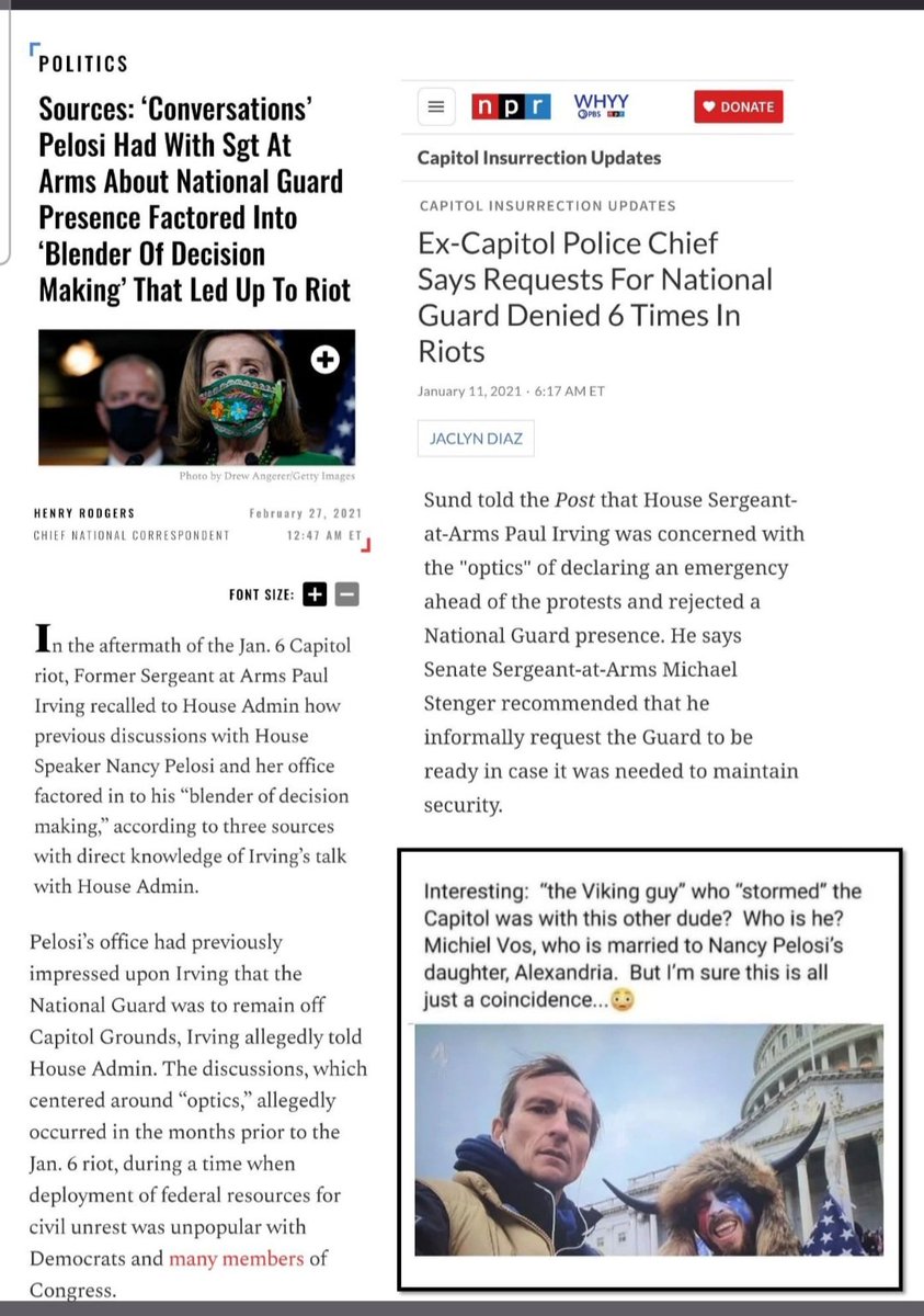 PELOSI-MITCH'S INSURRECTION They refused National Guard backup at Capitol 'as it would have been bad optics', but the real reason was they were plotting a violent insurrection (framing Trumpers) to interrupt 14 hours of Senate Objections to certification of the 2020 Election.