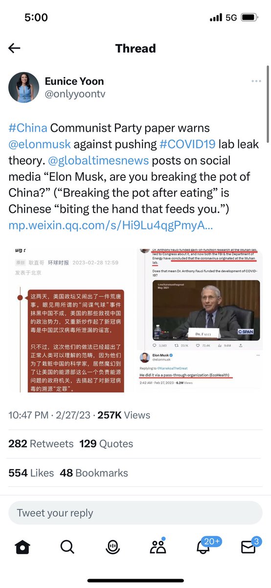 Musk never released #FauciFiles because its release was only a threat to ward off Bidens dogs from weaponizing DOJ against Elon. Xi/Obama/Fauci paid for Covid-19 and released it. So Xi threatened Musk not to release lab leak theory (Fauci Files) as it implicates Xi! https://t.co/0MnMG7kSEA