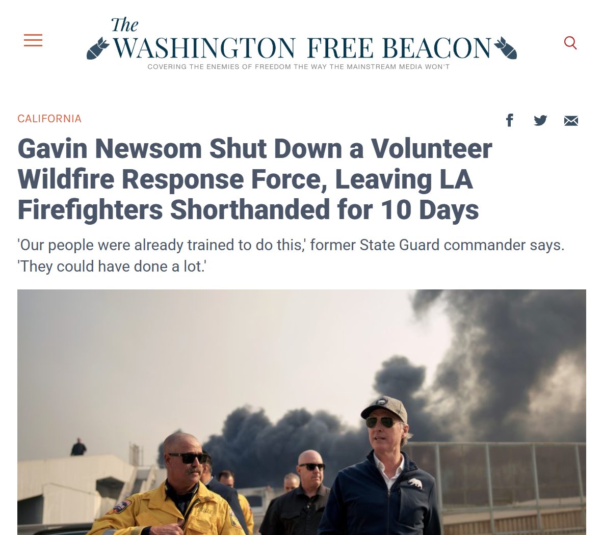 All the details on this and more at the link below. @FreeBeacon w/ @SusannahLuthi https://freebeacon.com/california/gavin-newsom-shut-down-a-volunteer-wildfire-response-force-leaving-la-firefighters-shorthanded-for-10-days/